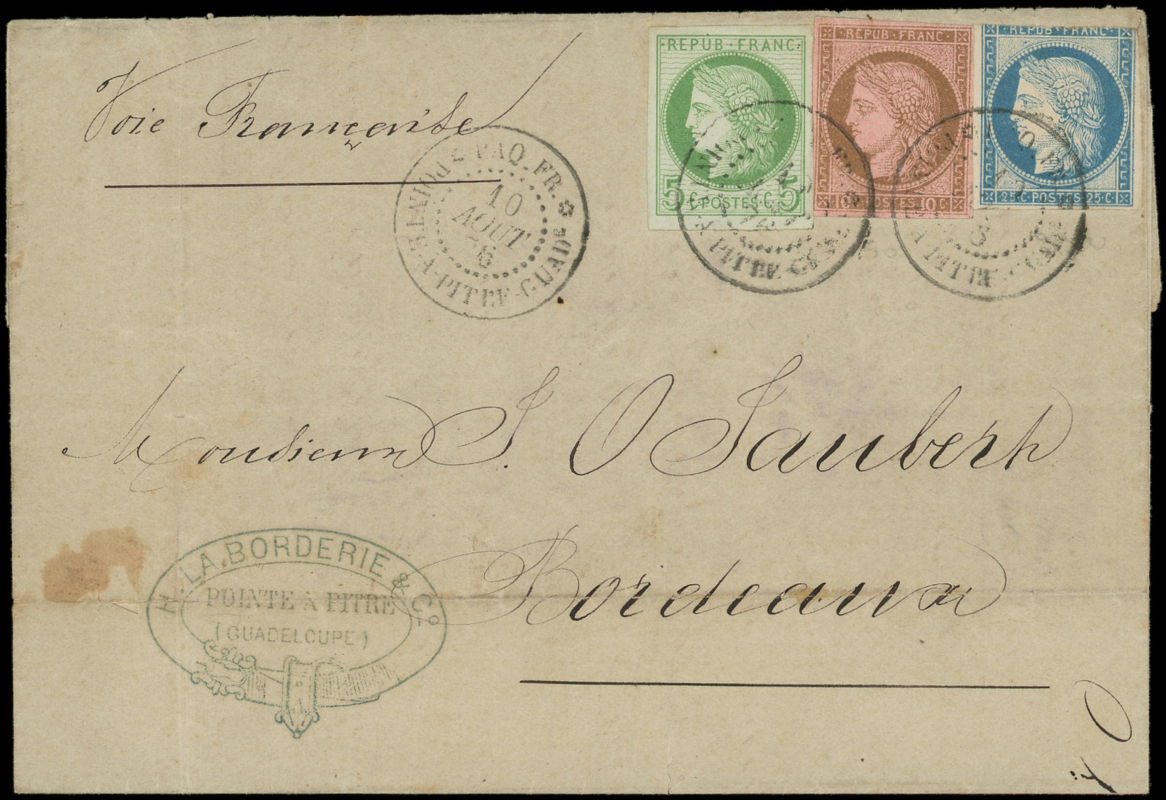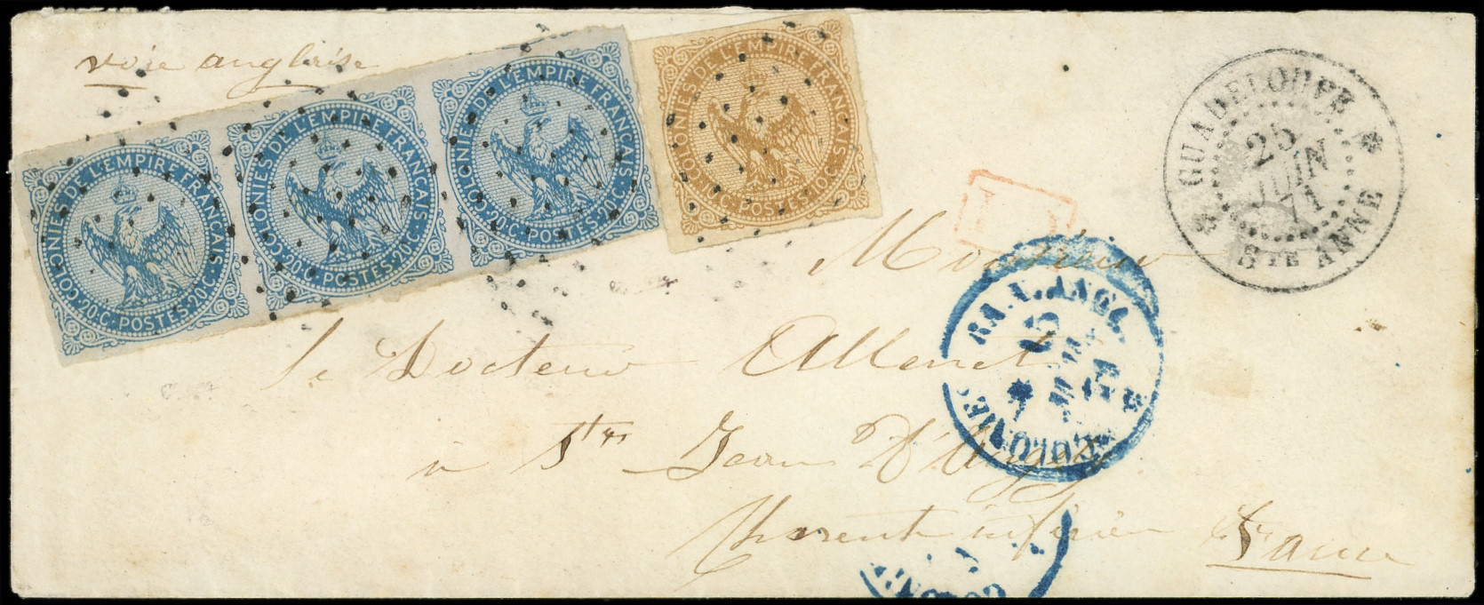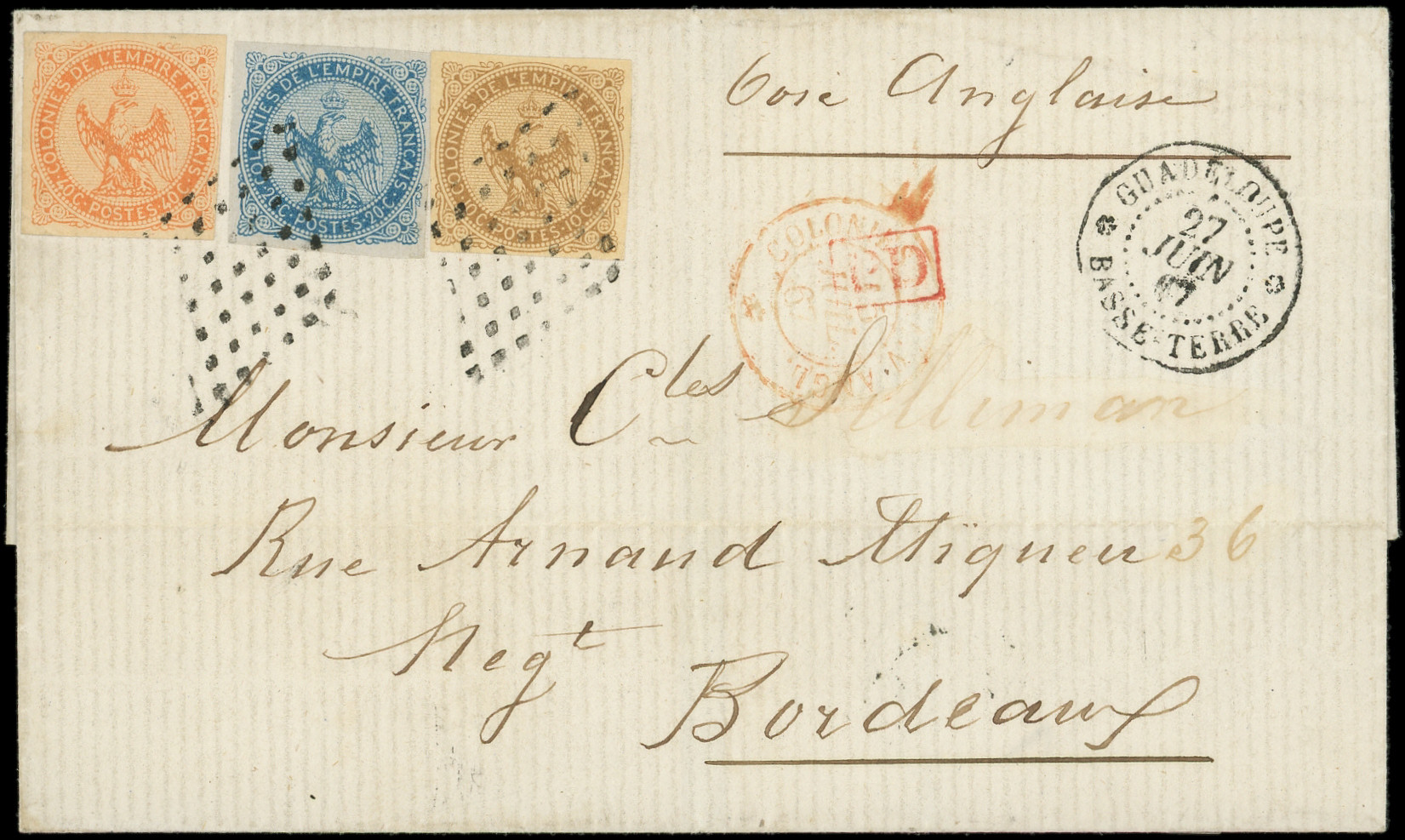 20c. et 40c. obl. Losange de 49 points s. LSC, càd BASSE-TERRE 27/6/67, 70c. par voie anglaise, arr. Bordeaux 16/7, TTB (Image) (Image2)