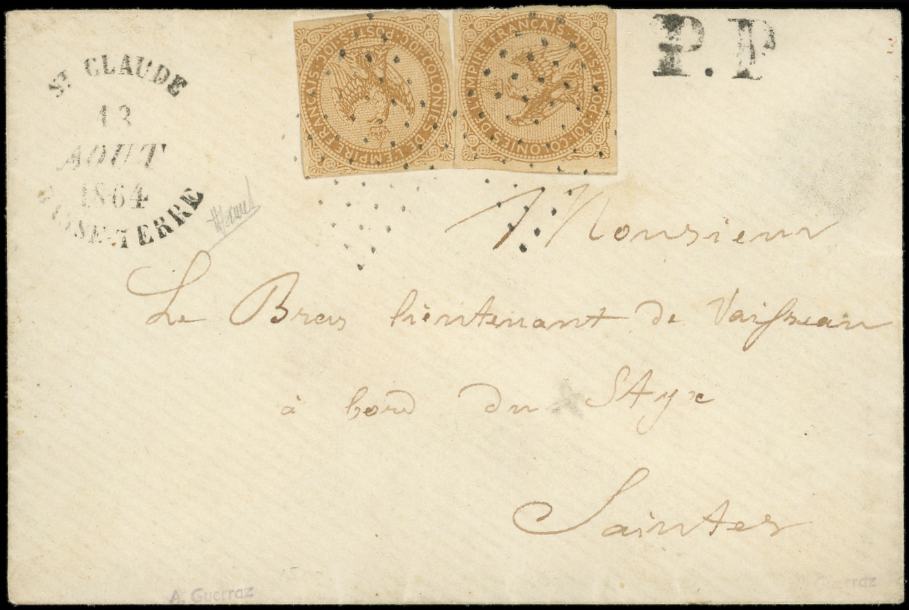 bistre (2) obl. Losange s. Env., càd St CLAUDE BASSE TERRE 13/8/64, pour SAINTES, port local, RR et TTB (Image)