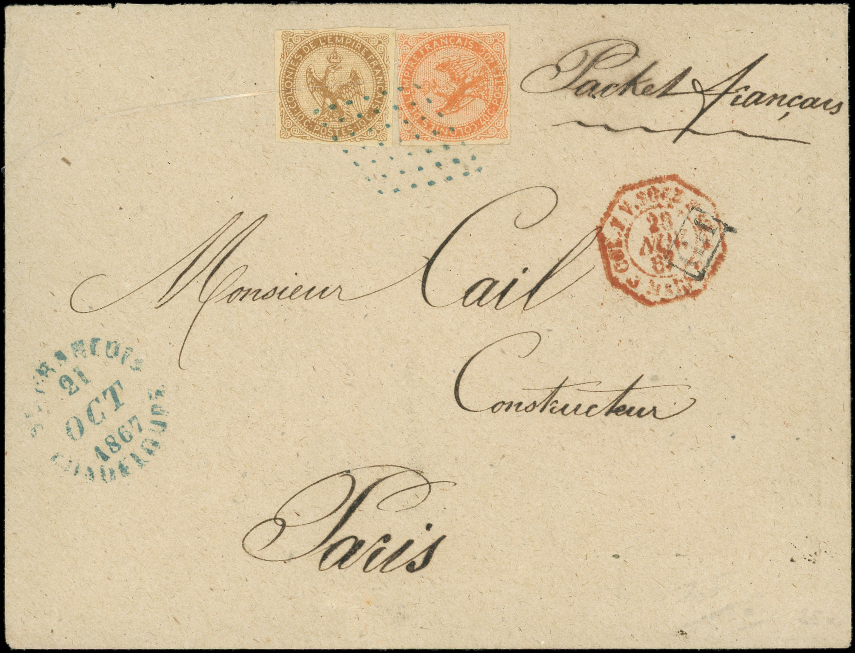 10c. et 40c. obl. Losange de 49 points s. Env., càd St FRANCOIS 21/10/67, le tout en bleu, pour Paris, TTB (Image)
