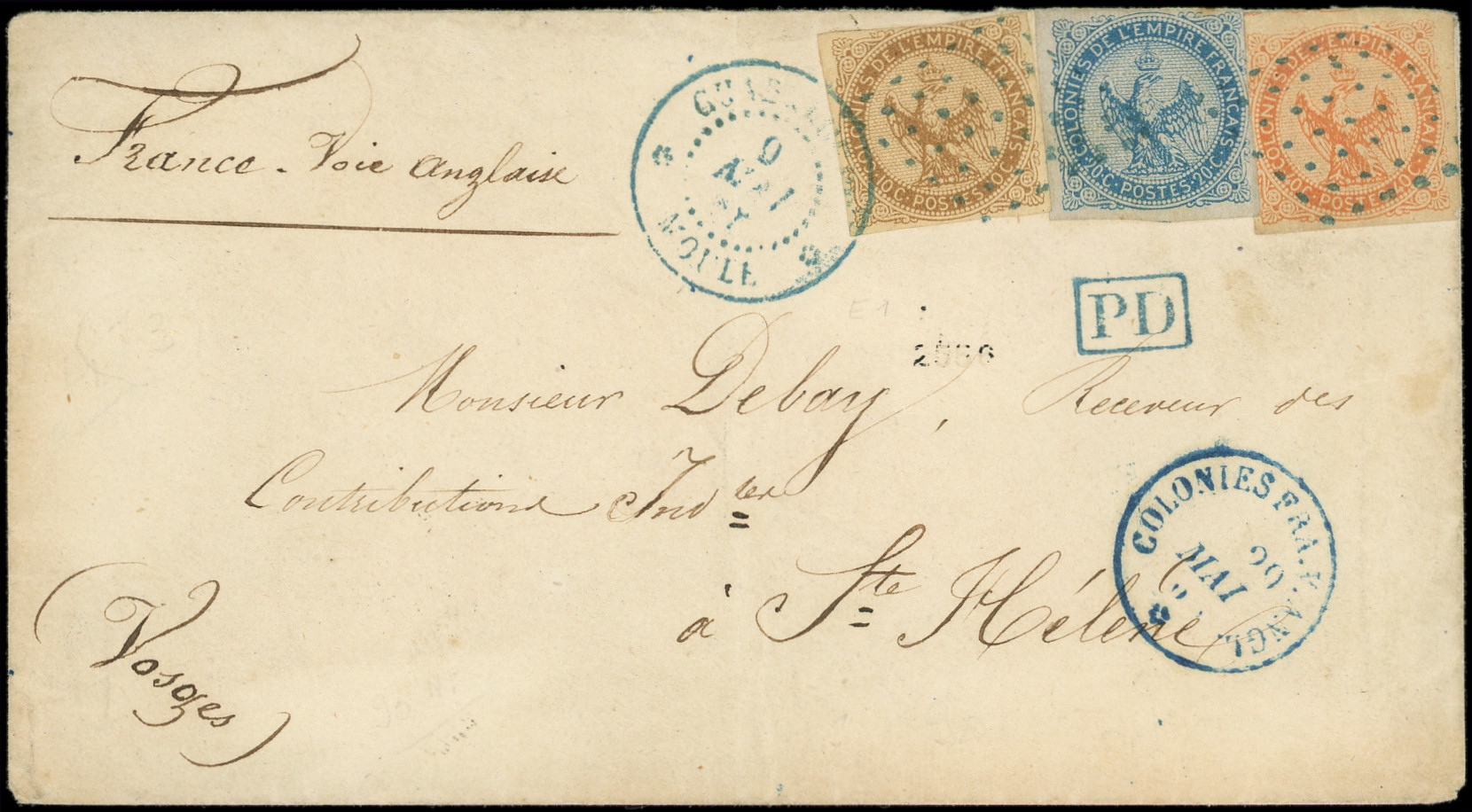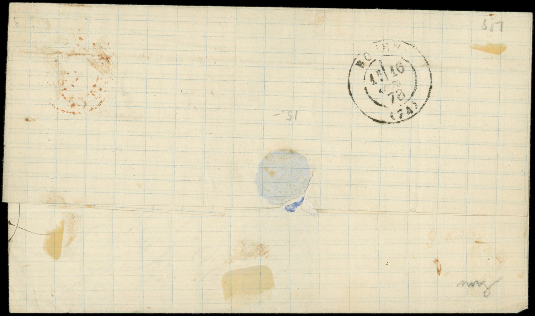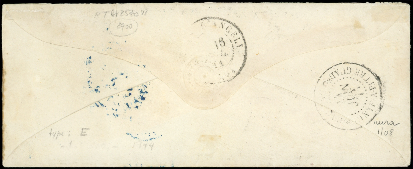 et 20c. BANDE de 3 obl. Losange s. Env., càd Ste ANNE 25/6/71 et arr. St Jean d'Angely 26/7, TTB (Image) (Image2)
