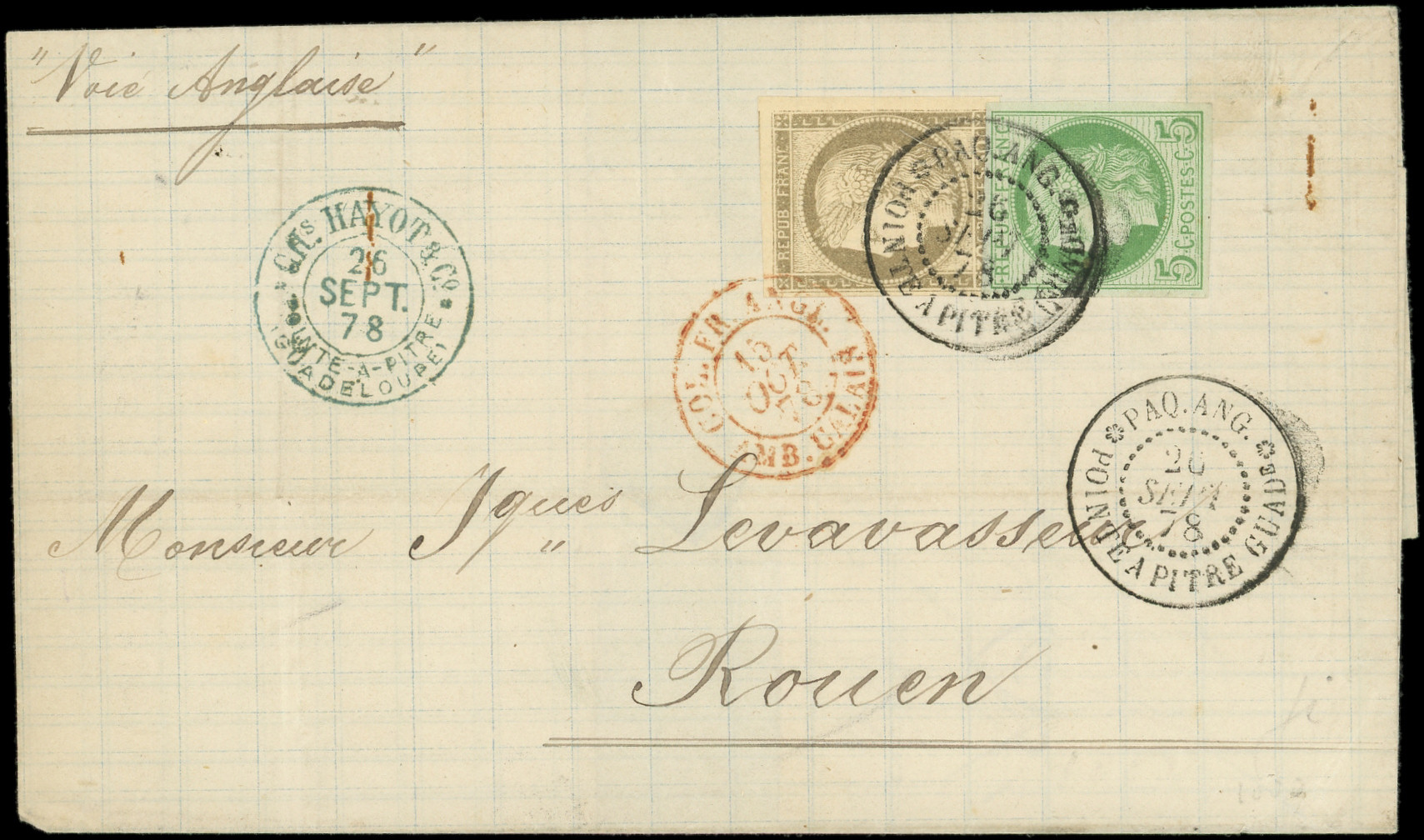 5c. et 30c. obl. càd PAQ. ANG. POINTE A PITRE GUADe 26/9/78 s. LSC, arr. Rouen 16/10, Superbe (Image) (Image2)