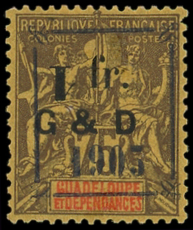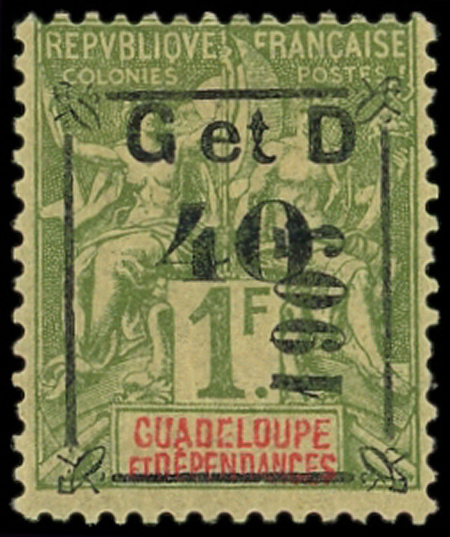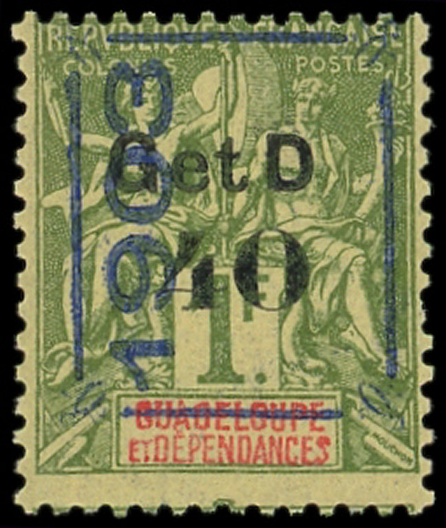 olive, surch. noire, Types z et m, barre verticale traversant le G, TB (Image)