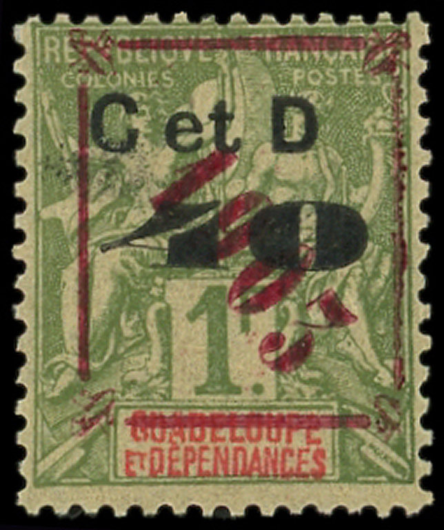 olive, surch. rouge Types gg et n, C au lieu de G, TB (Image)