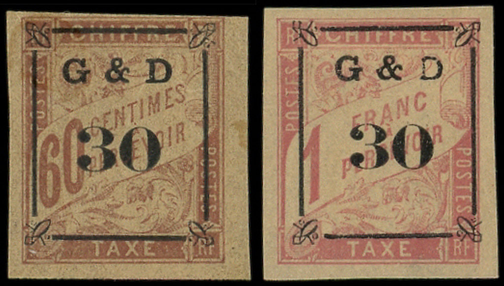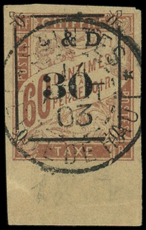 sur 60c. brun sur chamois et 30 sur 1f. rose sur paille, TB (Image)