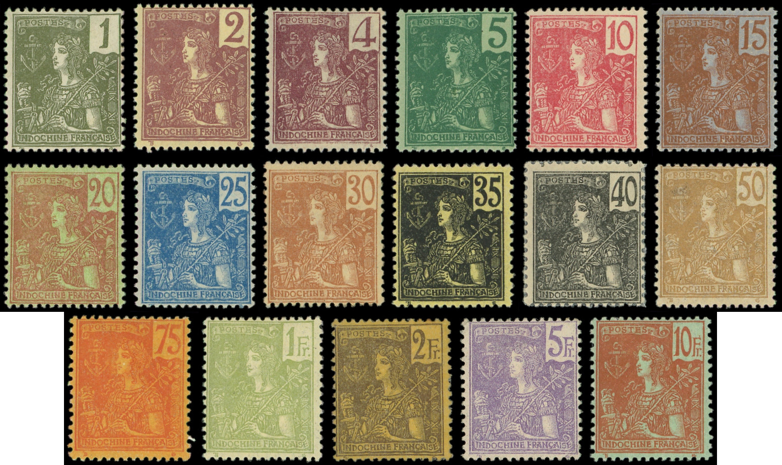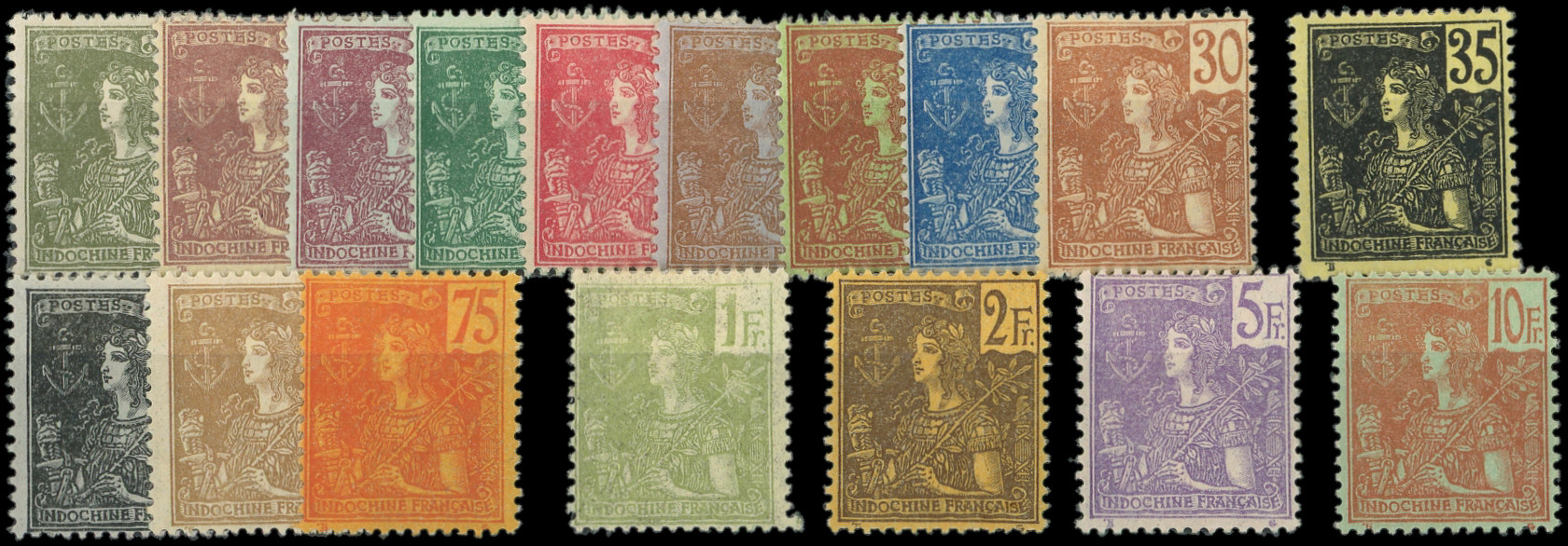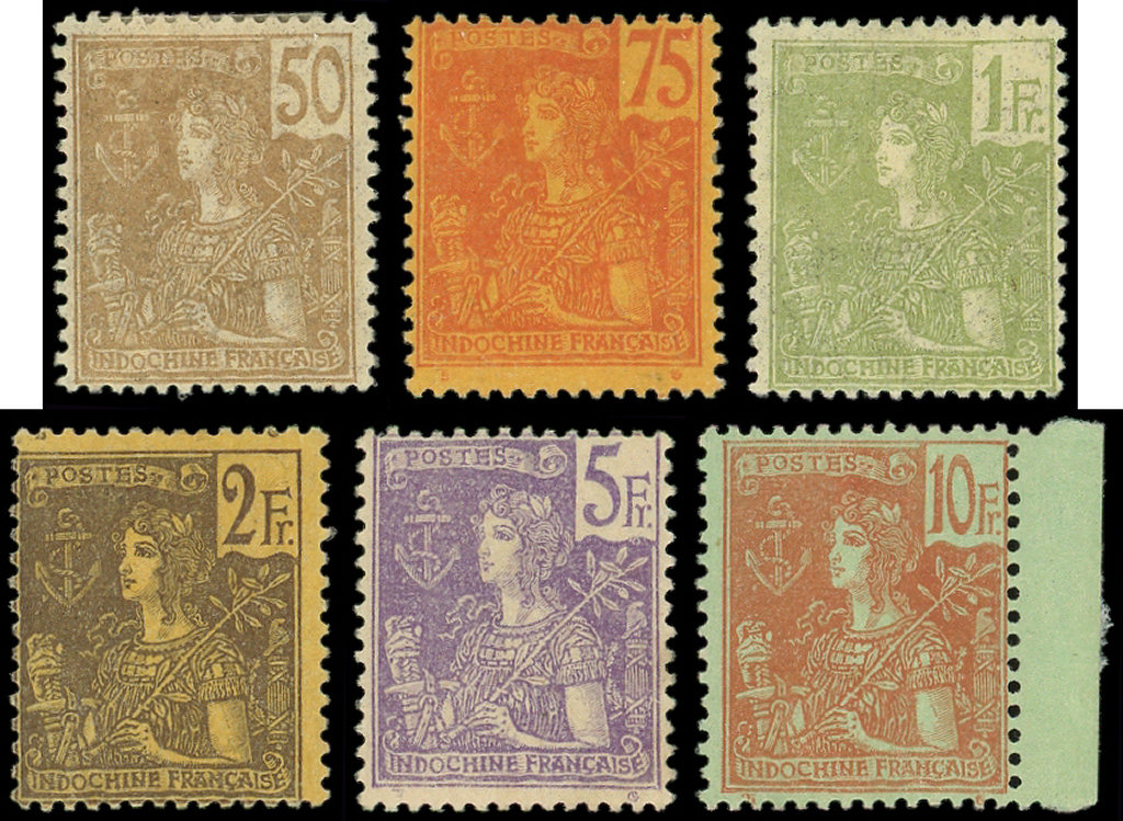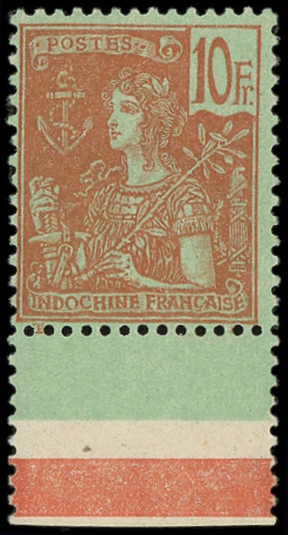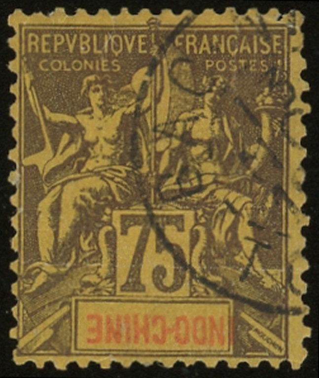 sur jaune, légende INDO-CHINE RENVERSEE, petit pli horiz. et qqs déf. de dentelure dans la partie supérieure mais timbre RR, 5 pièces connues, obl., aspect TTB. S