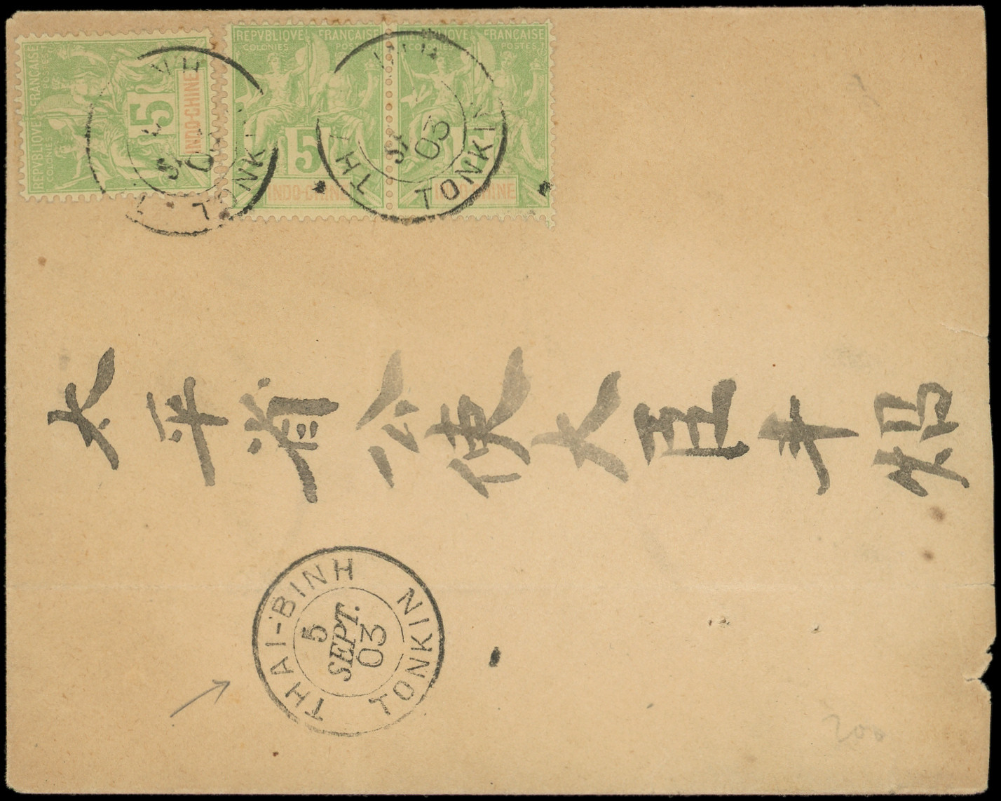 vert-jaune (3) obl. THAI-BINH TONKIN 5/9/03 s. Env., TB (Image)
