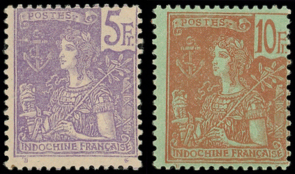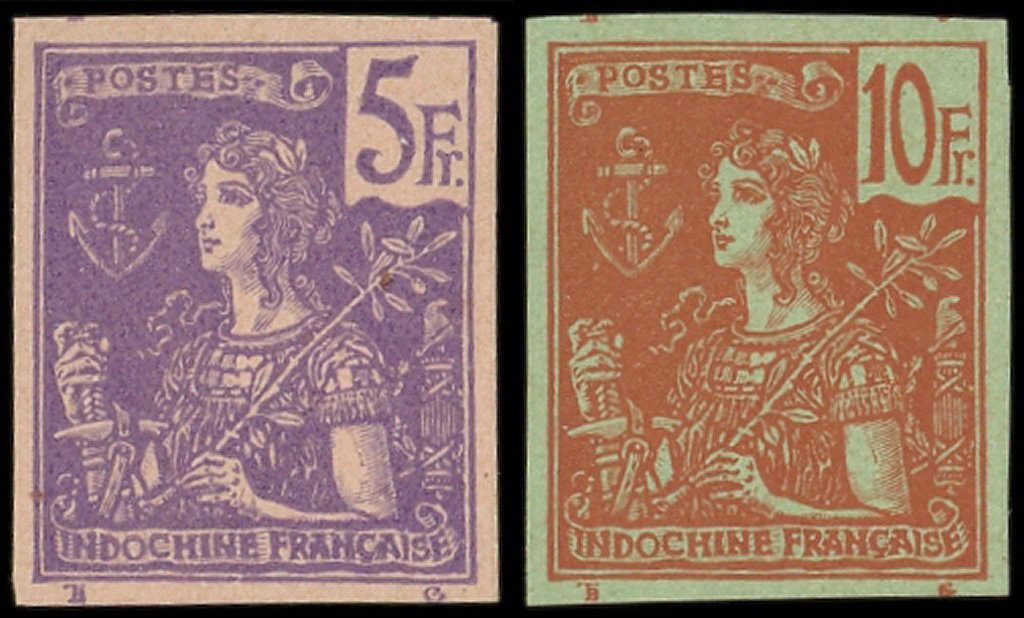 violet sur lilas et 10f. rouge sur vert-bleu, TB (Image)