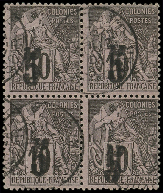 noir sur lilas, BLOC de 4 obl., R et TB (Image)
