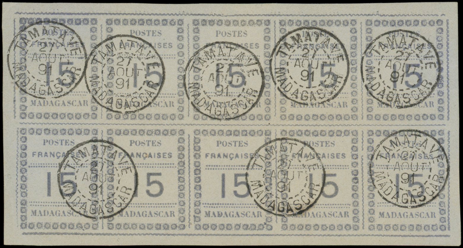 sur gris, BLOC de 10 avec bords, obl. TAMATAVE 27/8/91, TTB (Image)
