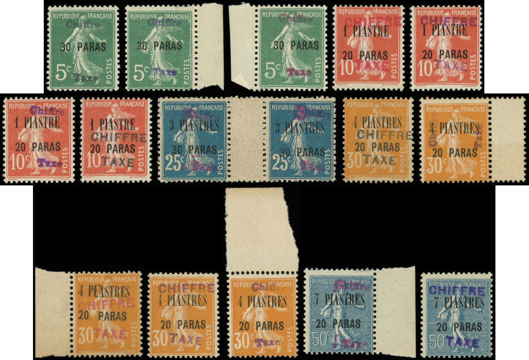 brique sur vert et 30c. brun, N°14, 15, 17 et 19 T I, Tirage de l'Expo de 1900, toujours sans gomme, RRR, TB (Image)