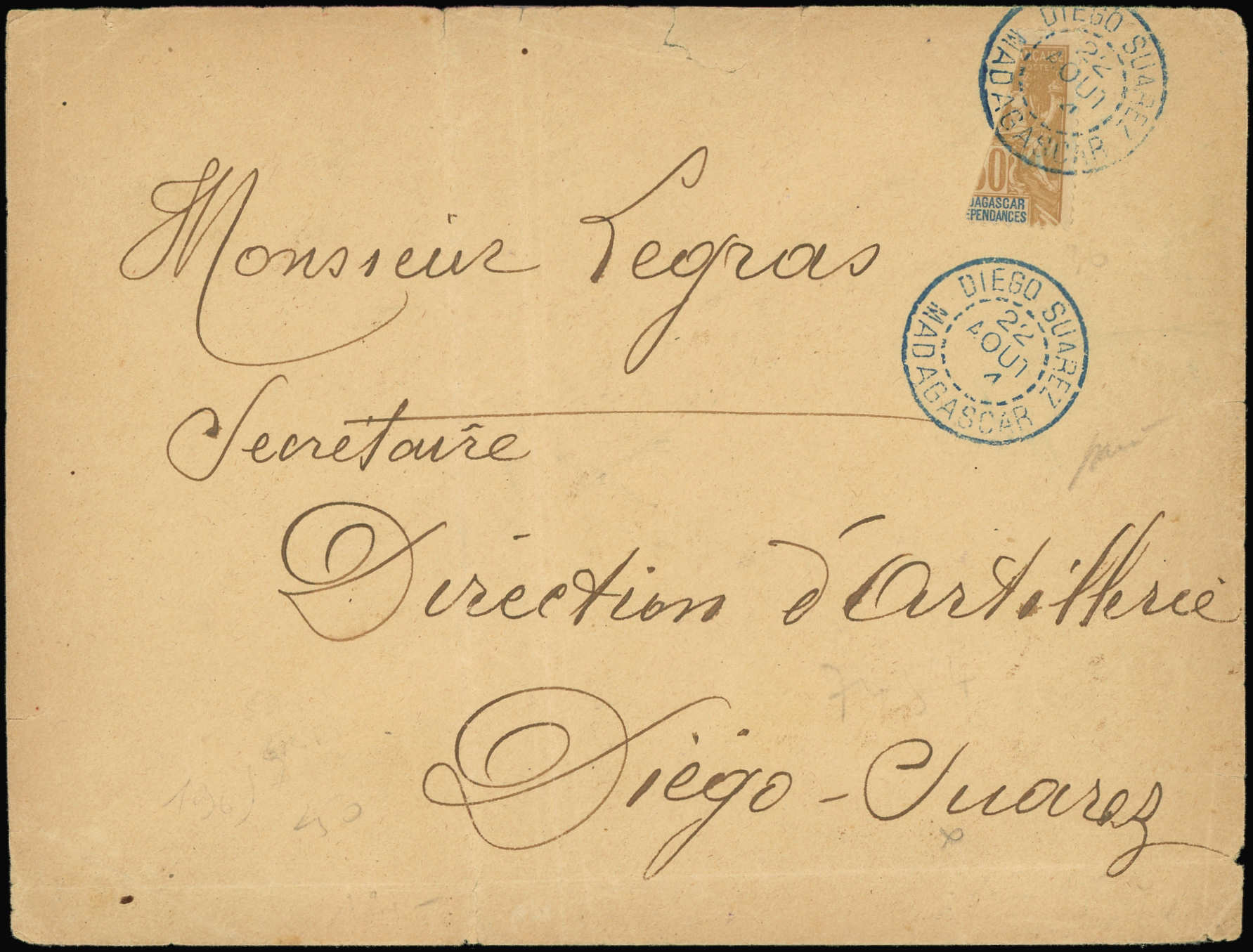 MOITIE de timbre NON surch. obl. càd DIEGO SUAREZ s. Env. locale, TB (Image)