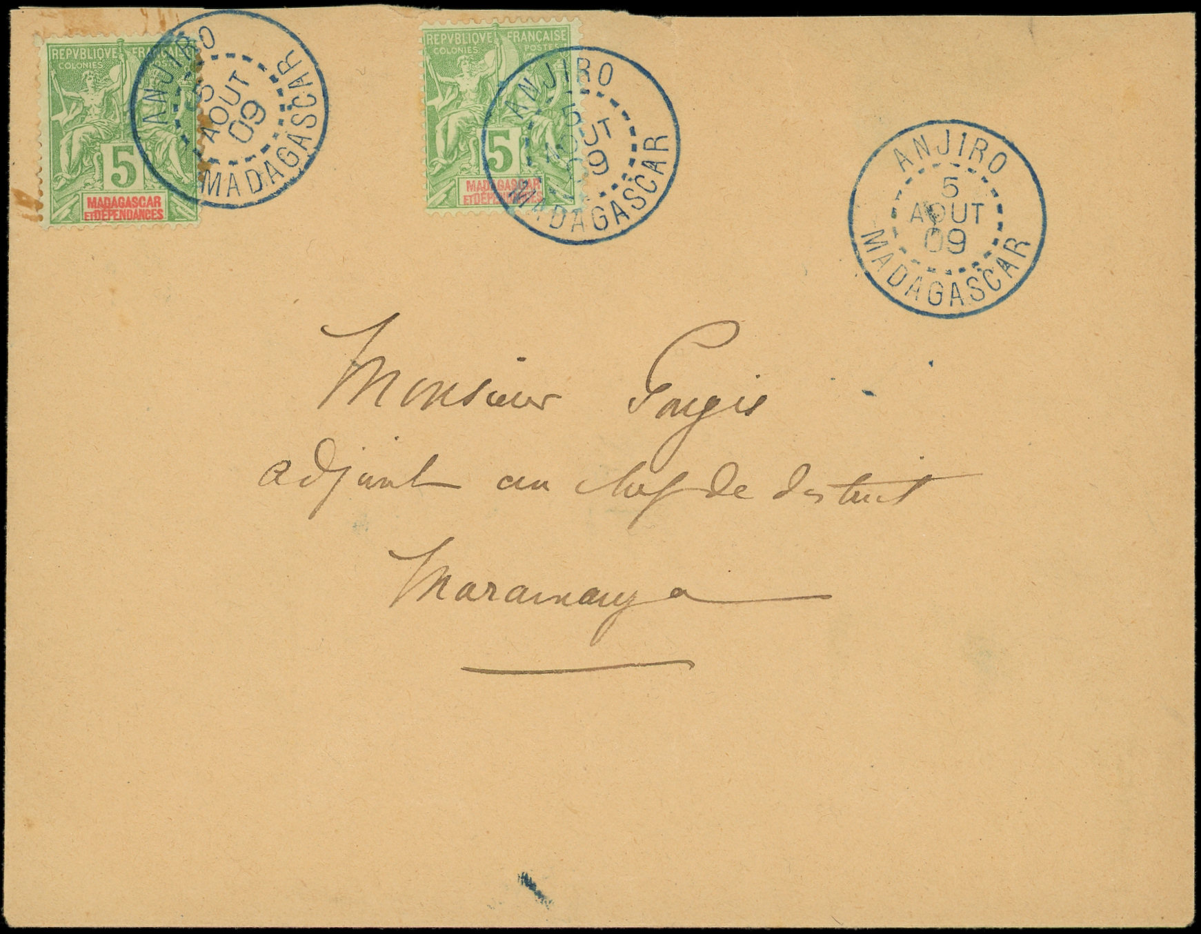 vert-jaune (2) obl. càd ANJIRO 5/8/09 s. Env., arr. MARANGA, TB (Image) (Image2)