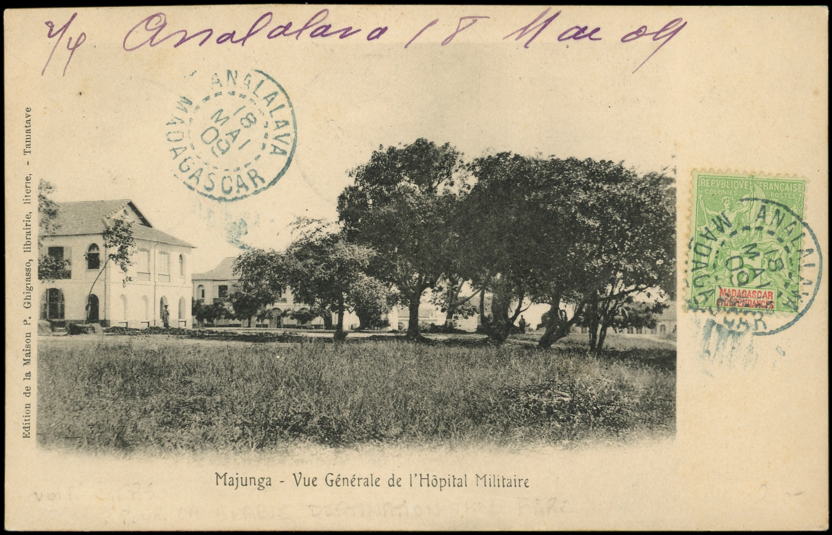 et 58 obl. càd MAJUNGA 24/5/04 s. CP illustrée Rec. pour Paris 25/7, Superbe (Image)