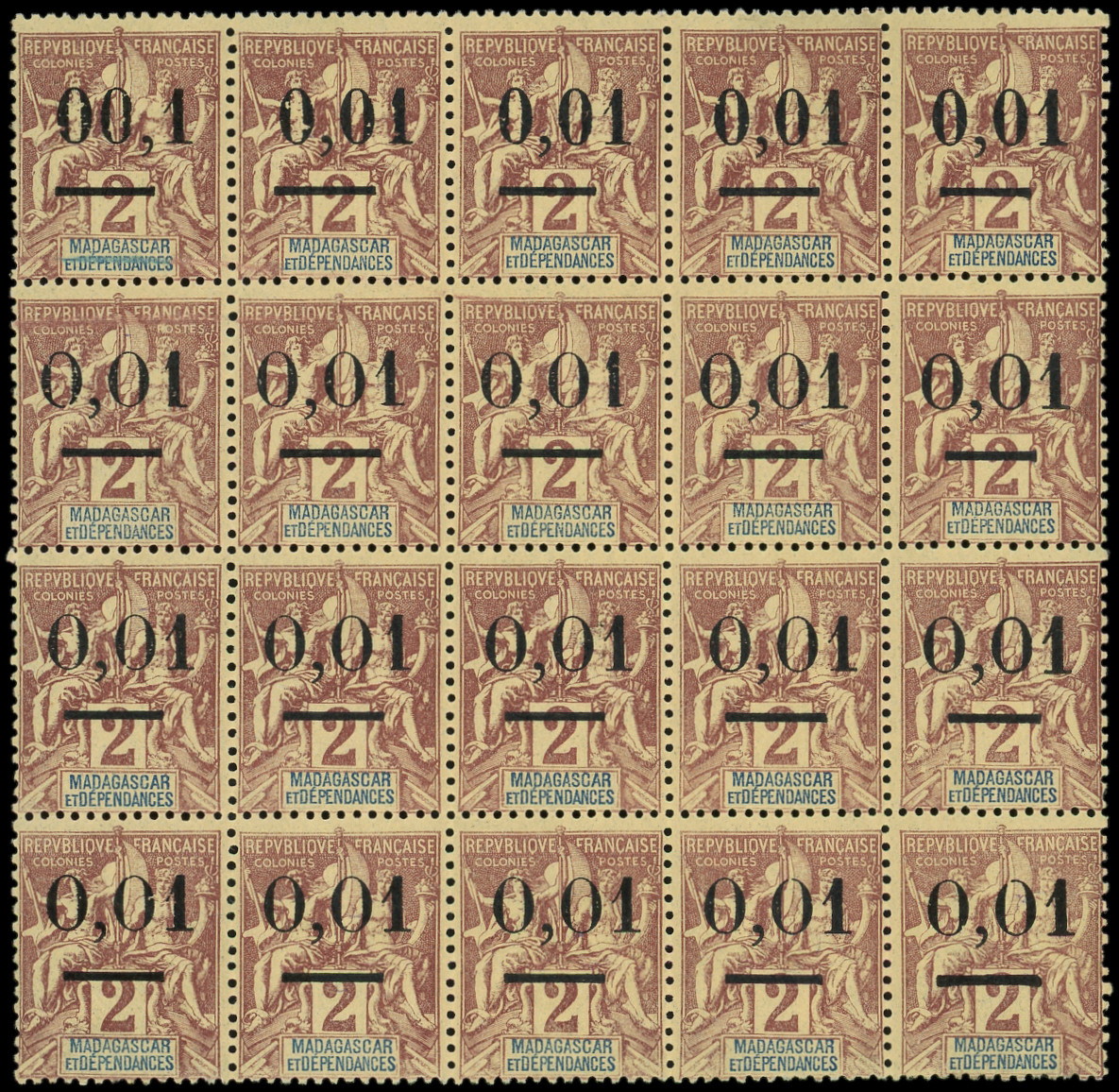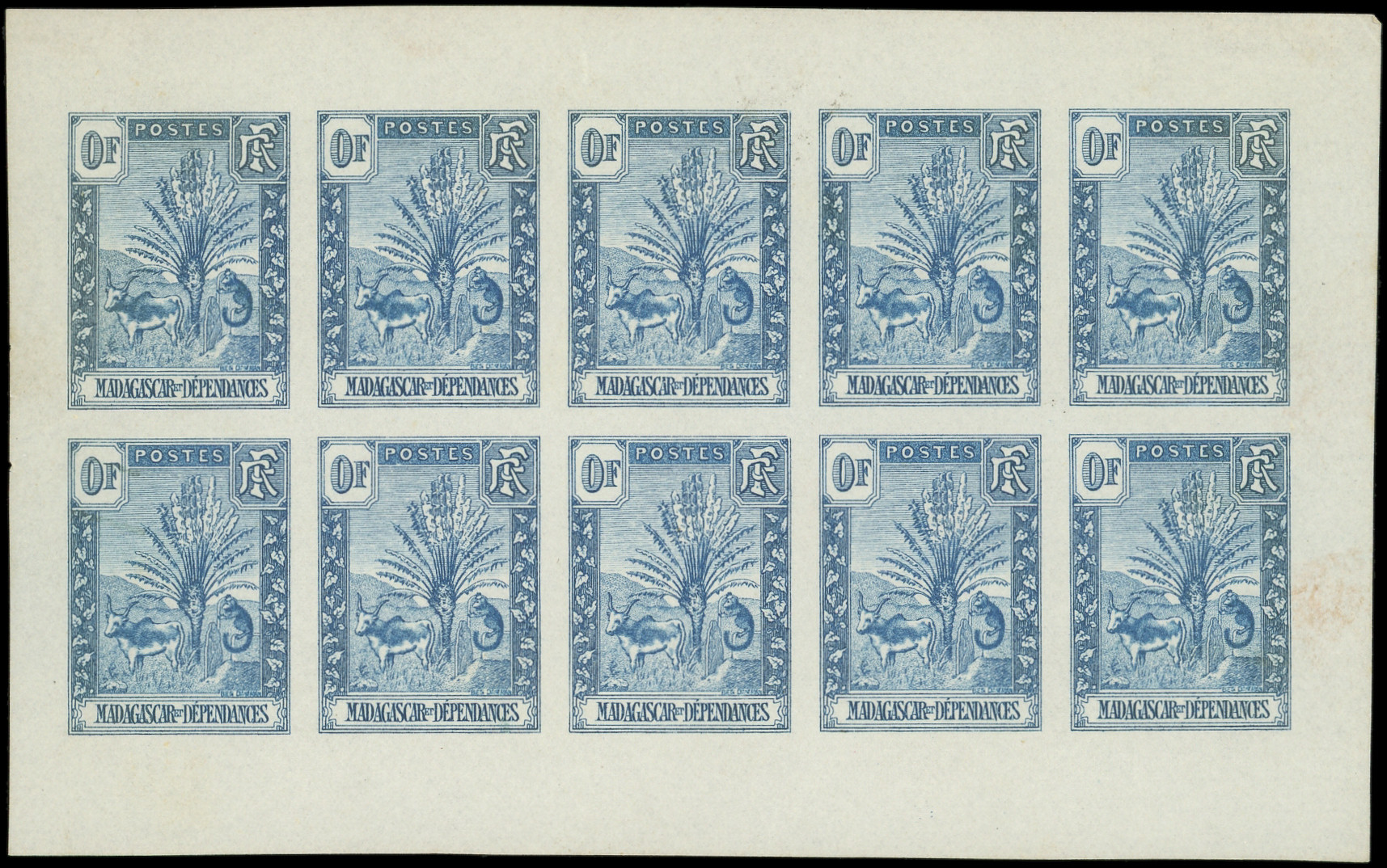 brun, sans virgule, BLOC de 30 interp. présentant 10 paires verticales T I et T II se tenant + 5 ex. T I et 5 ex. T II, RR ainsi 604337peut-être unique, TTB (Image)