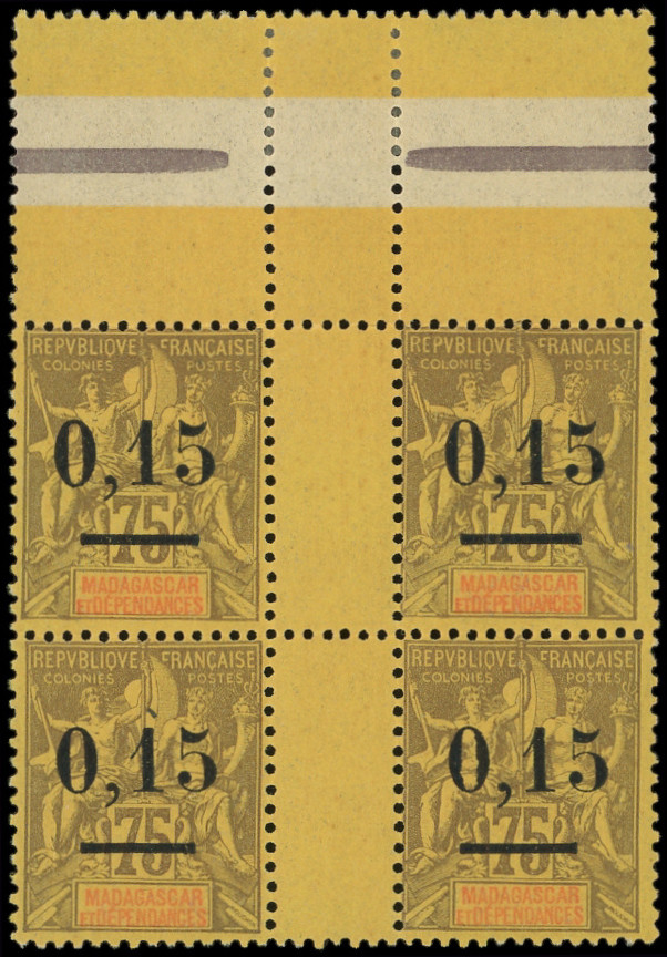 75c. violet sur jaune, BLOC de 4 bdf sans Mill., TB (Image)