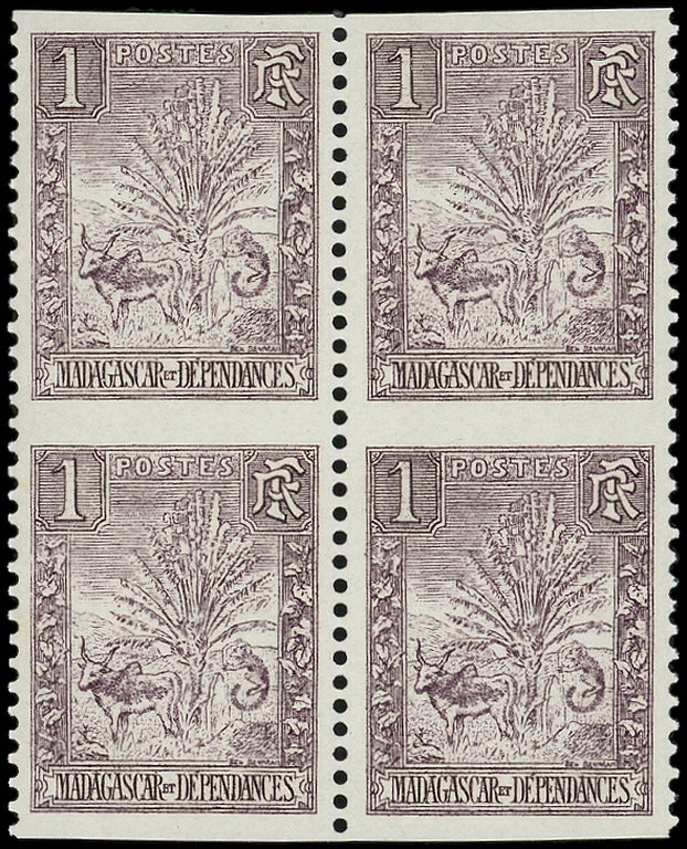 violet-gris, BLOC de 4 NON DENTELE horizontalement, TB (Image)