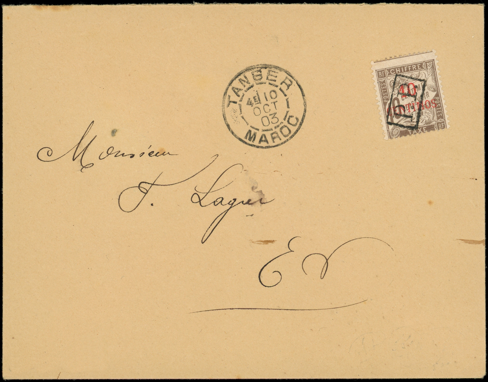 brun, surch. PP s. Env. avec càd TANGER 10/10/03, TTB, cote Maury (Image)