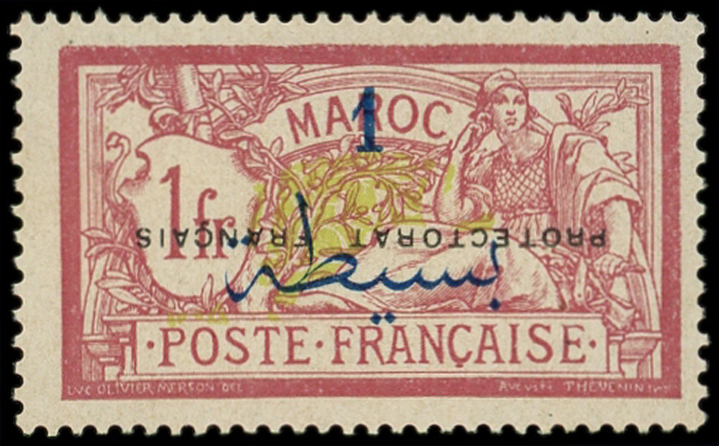 lie de vin et olive, surch. PROTECTORAT RENVERSEE, TB (Image)
