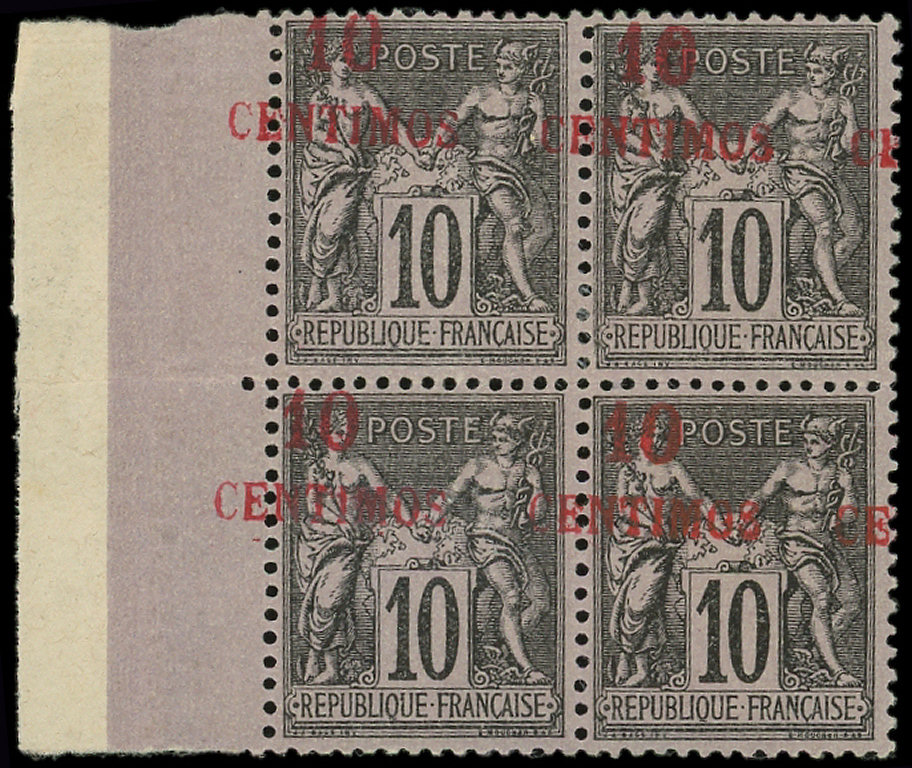 10c. noir sur lilas, T II, surcharge DEPLACEE, C à droite, BLOC de 4 bdf, légères adhérences, TB (Image)
