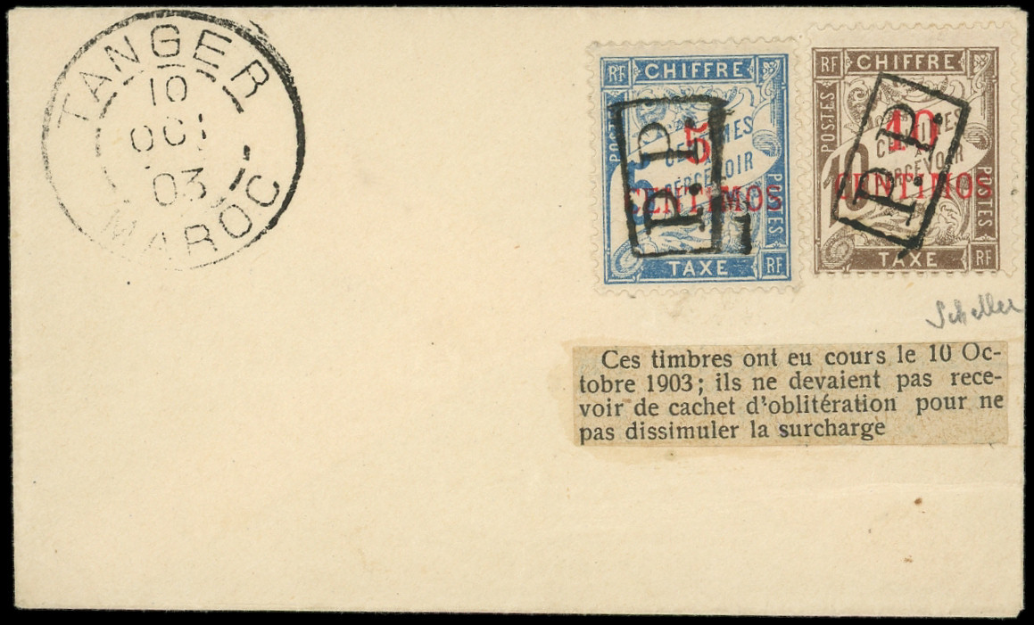bleu et 10c. brun surchargés P.P. s. une petite Env. avec càd TANGER 10/10/03, TTB. S (Image)