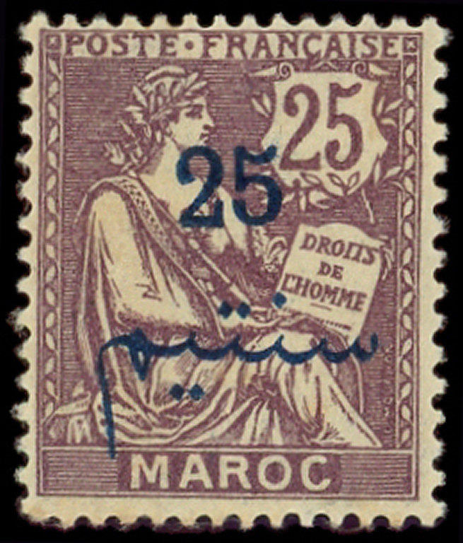 25c. violet-brun, SANS la surch. PROTECTORAT FRANCAIS, TB (Image)