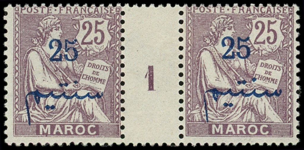 violet-brun, SANS la surcharge PROTECTORAT, PAIRE Mill.1, RR et TB (Image)