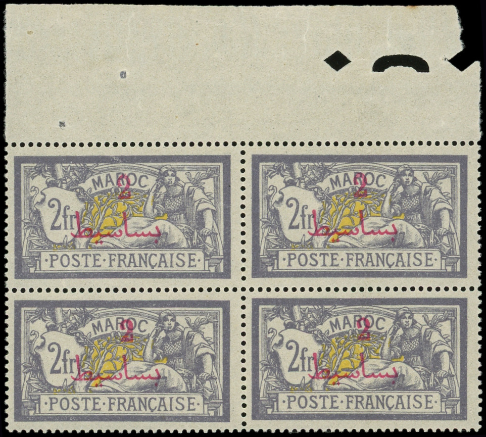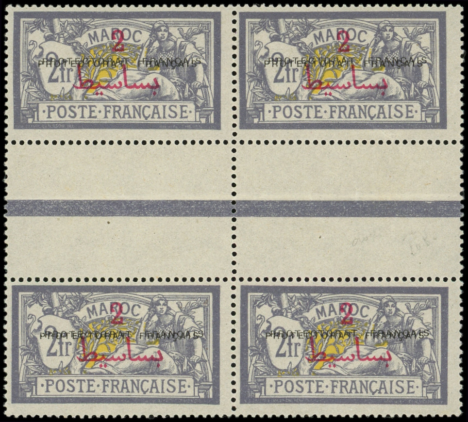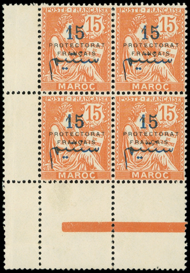 violet et jaune, DOUBLE surch. PROTECTORAT, BLOC de 4 interp., TTB (Image)