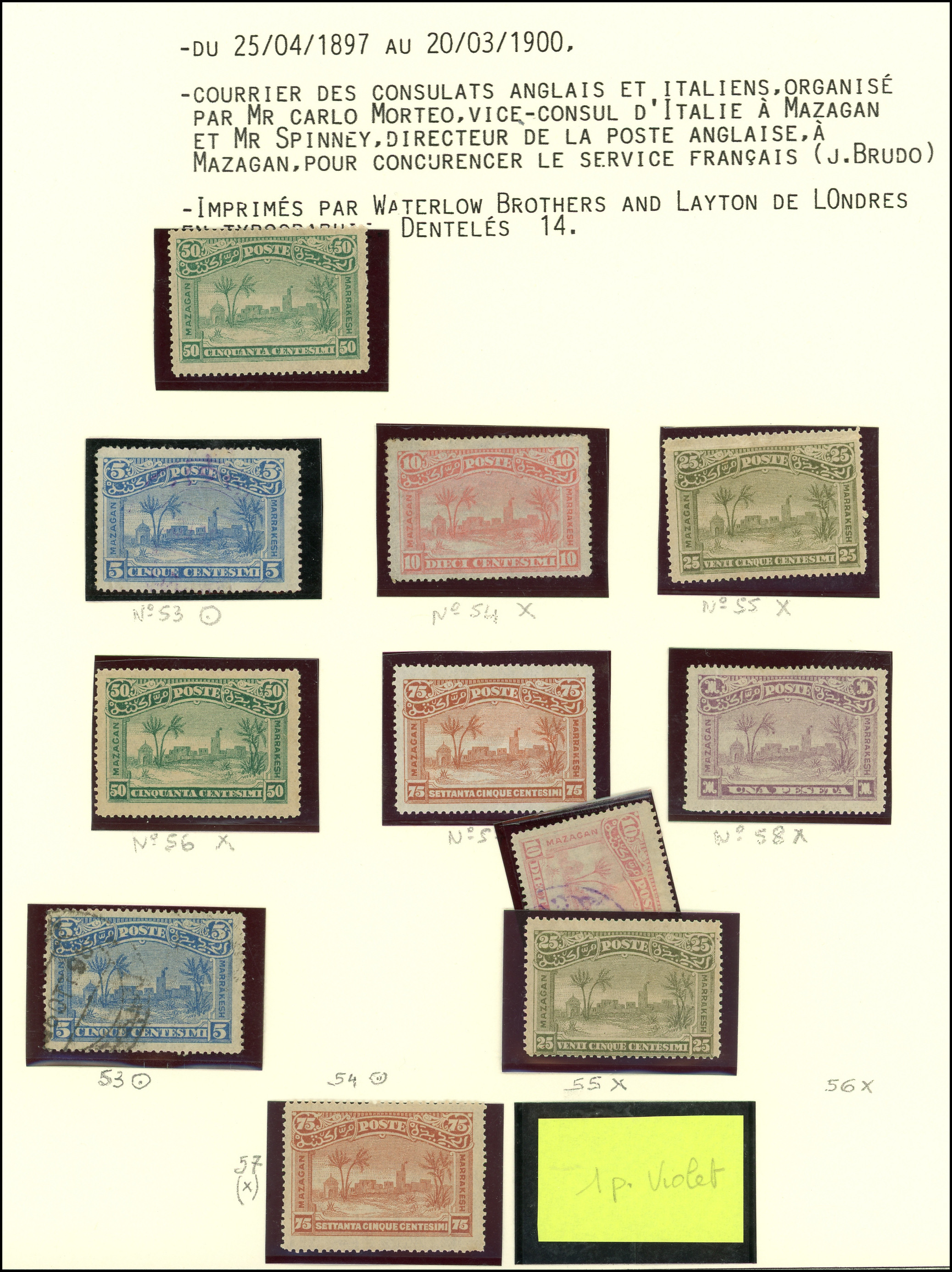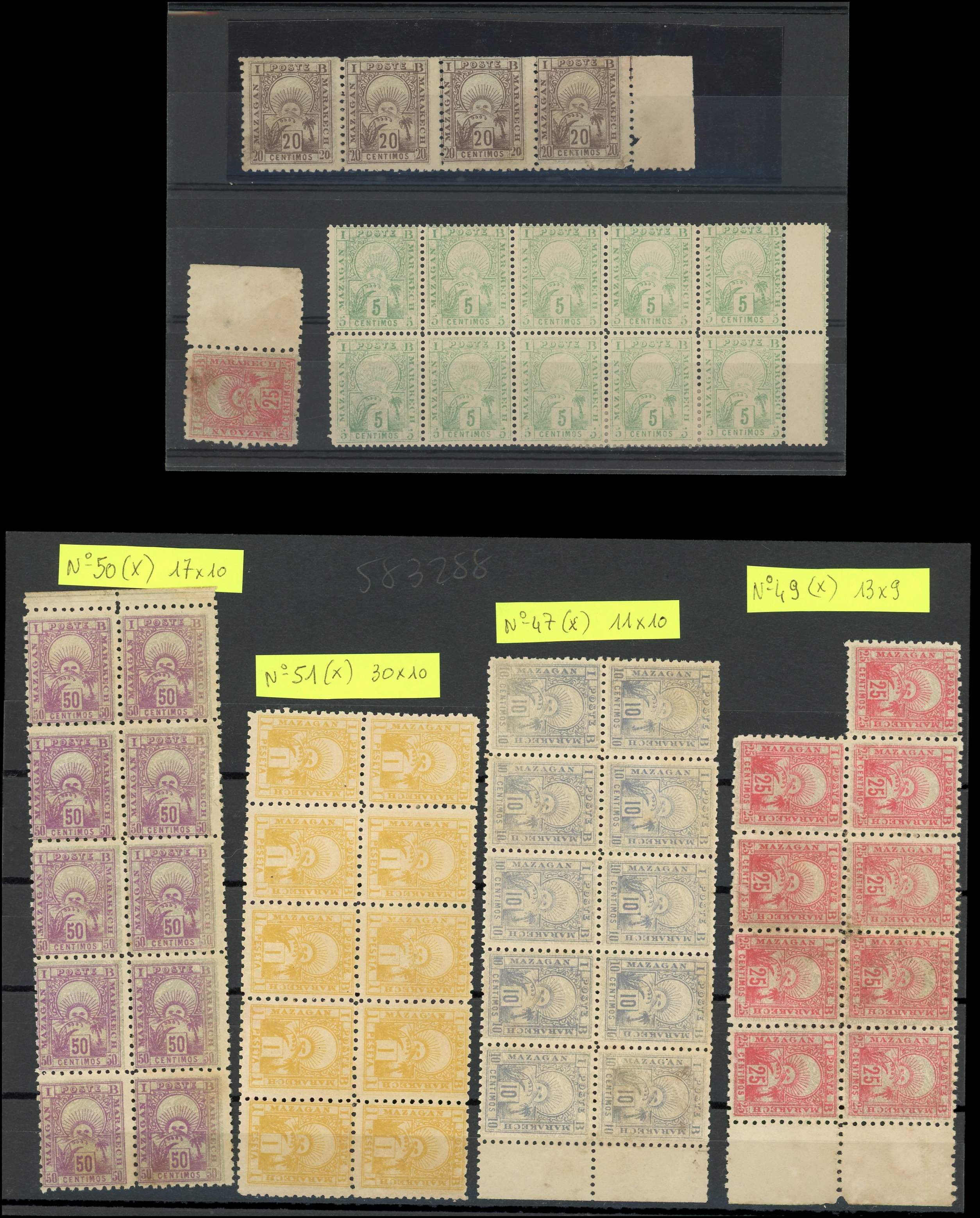 53/58 : Mazagan à Marrakesh, dont N°56/57 ** + N°54/55 obl. et N°55 (*) non dentelé, TB (Image)
