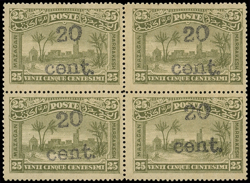 61A : 20 cent. sur 25c. olive, surch. noire BLOC de 4, TTB (Image)
