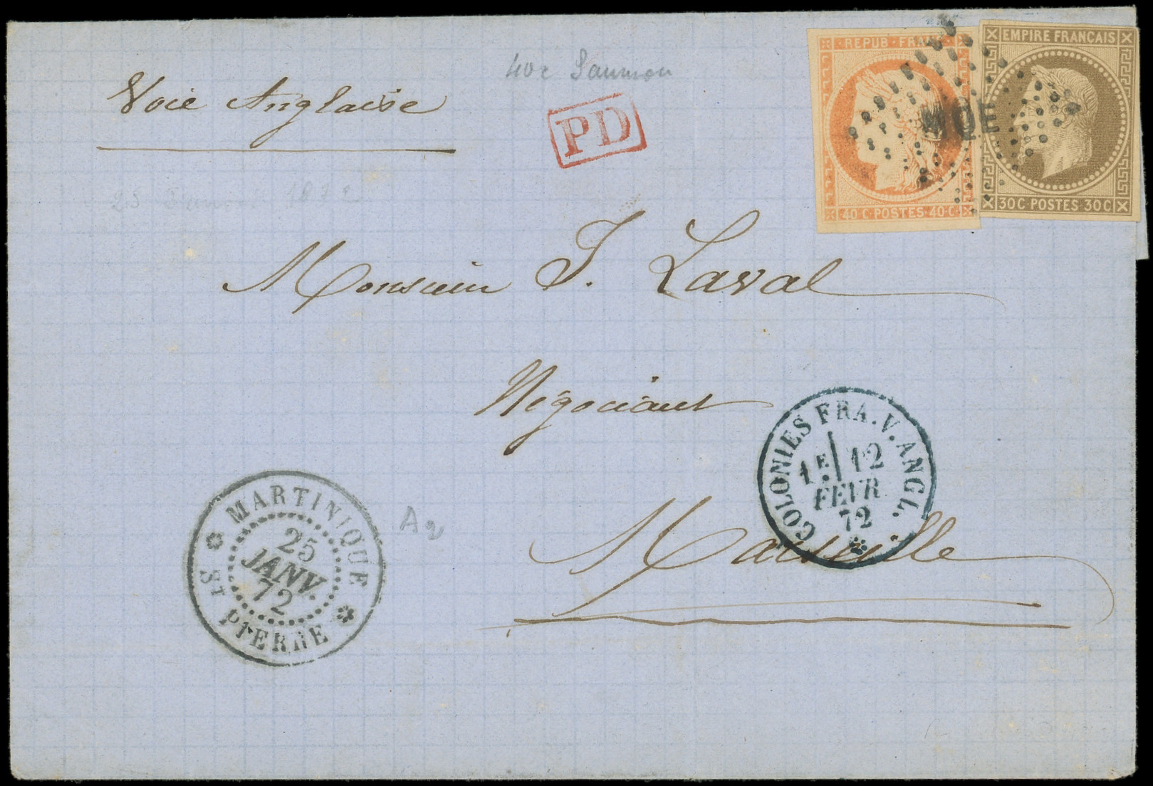 bistre PAIRE obl. Losange s. Env., càd FORT-DE-FRANCE 22/1/60, port local arr. St PIERRE, TTB (Image) (Image2)