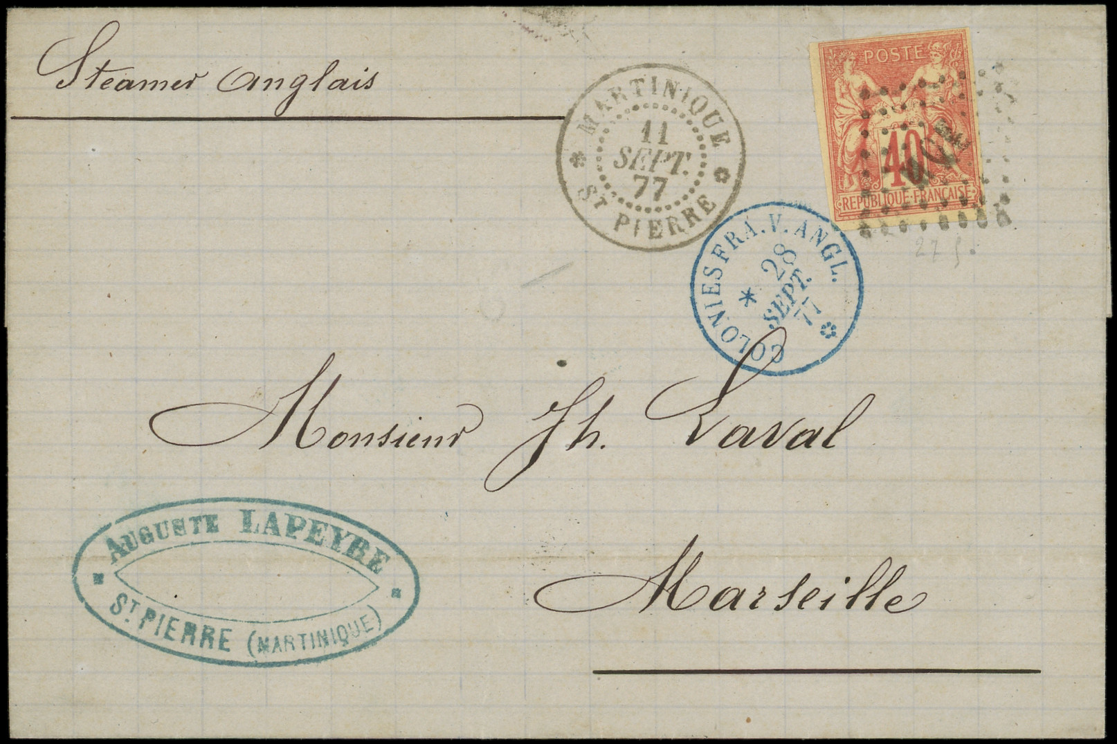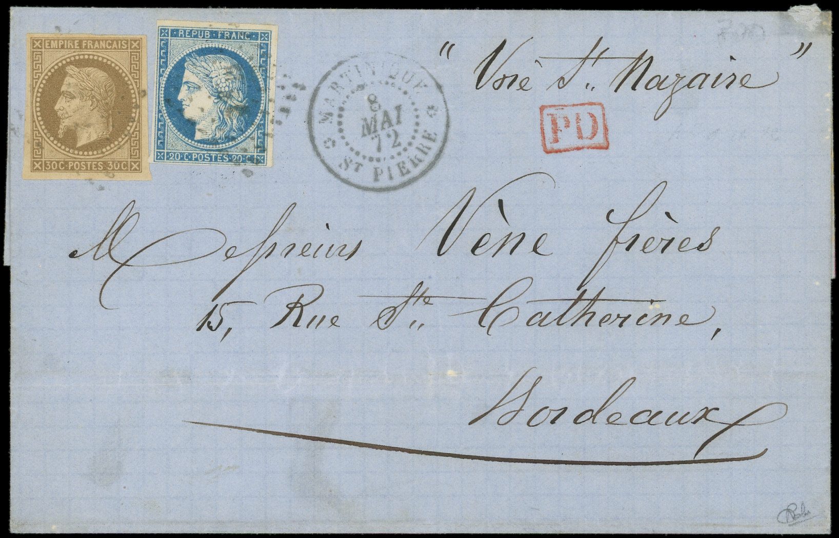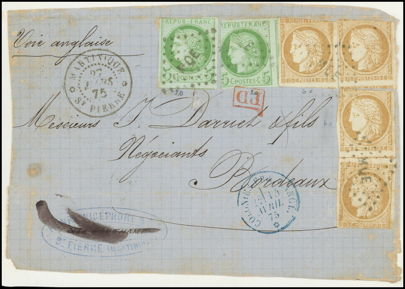 courtes) obl. Los. MQE s LSC, càd MARTINIQUE ST PIERRE 26/5/70, pour Bordeaux par voie Anglaise, affr. TRICOLORE (Image)