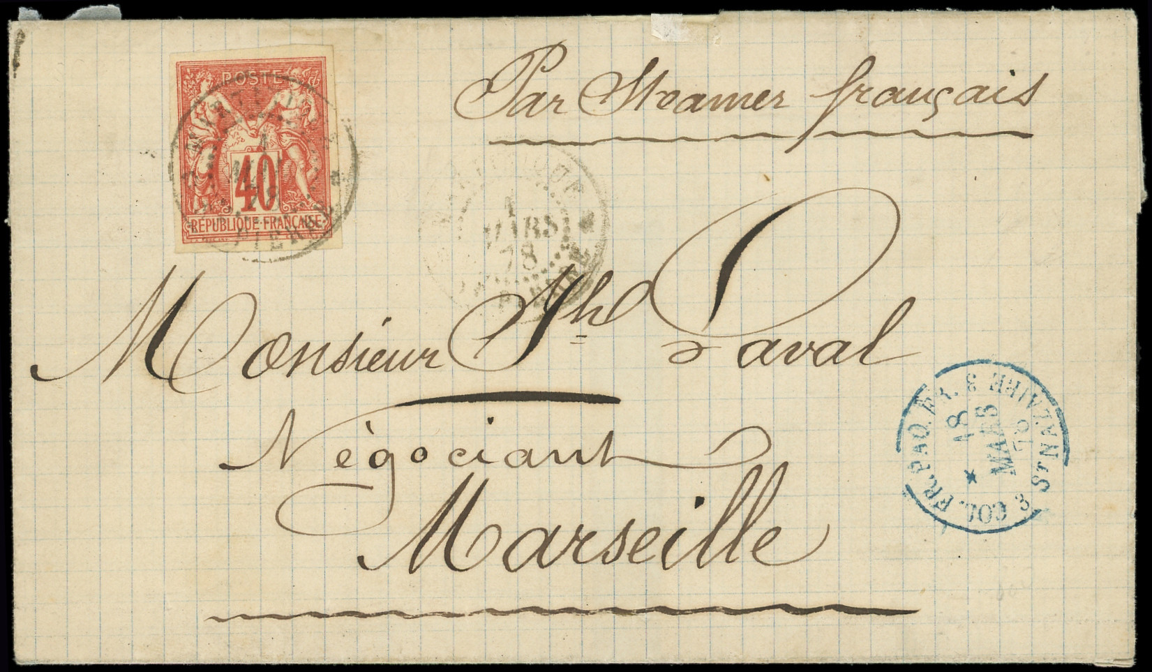 15c. gris et 20c. brun obl. càd ST PIERRE 8/7/78 s. lettre pour Bordeaux, pièce photo du catalogue Yvert, TTB (Image)