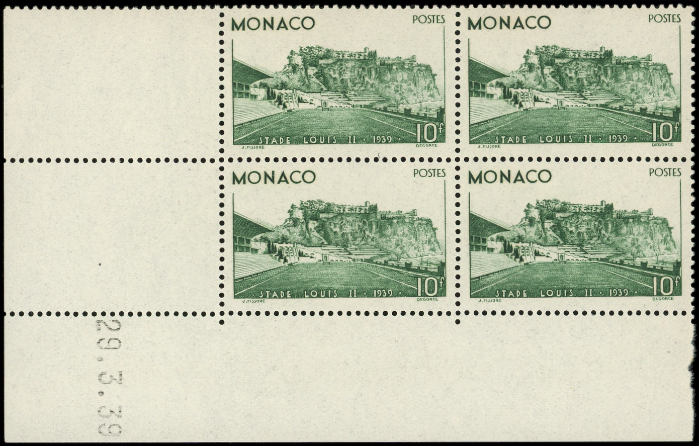 Stade Louis II, BLOC de 4 CD 29/3/39, TB (Image)