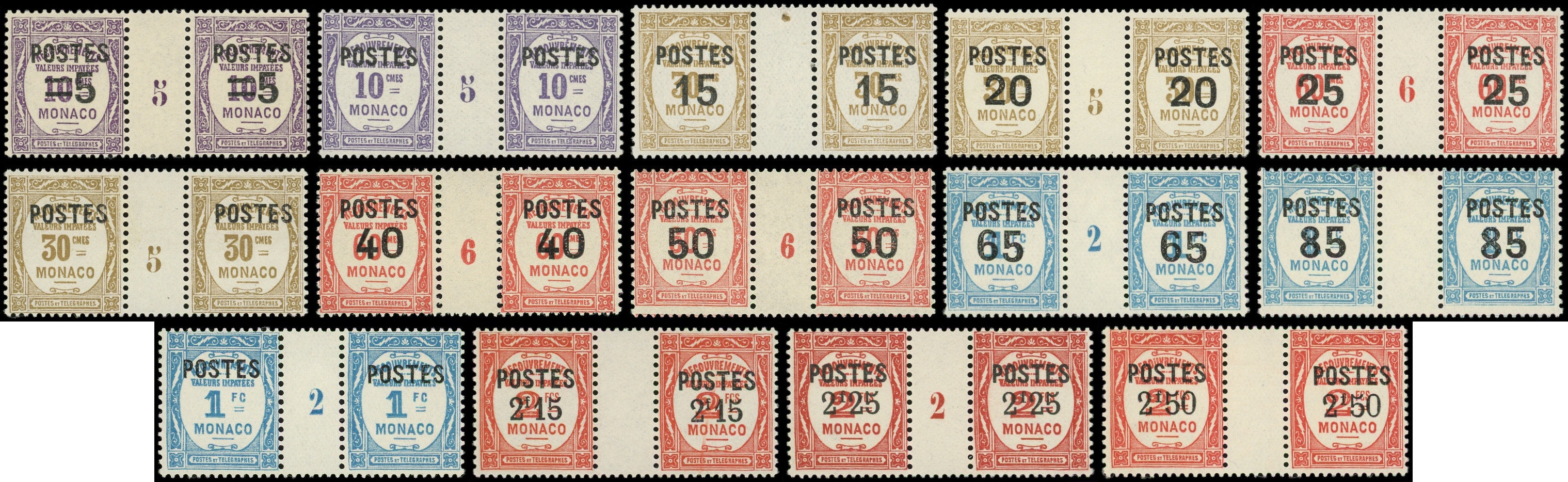 Taxe surchargée en PAIRES Millés. sauf N°142, 149, 151 et 153 paires interp. TB (Image)