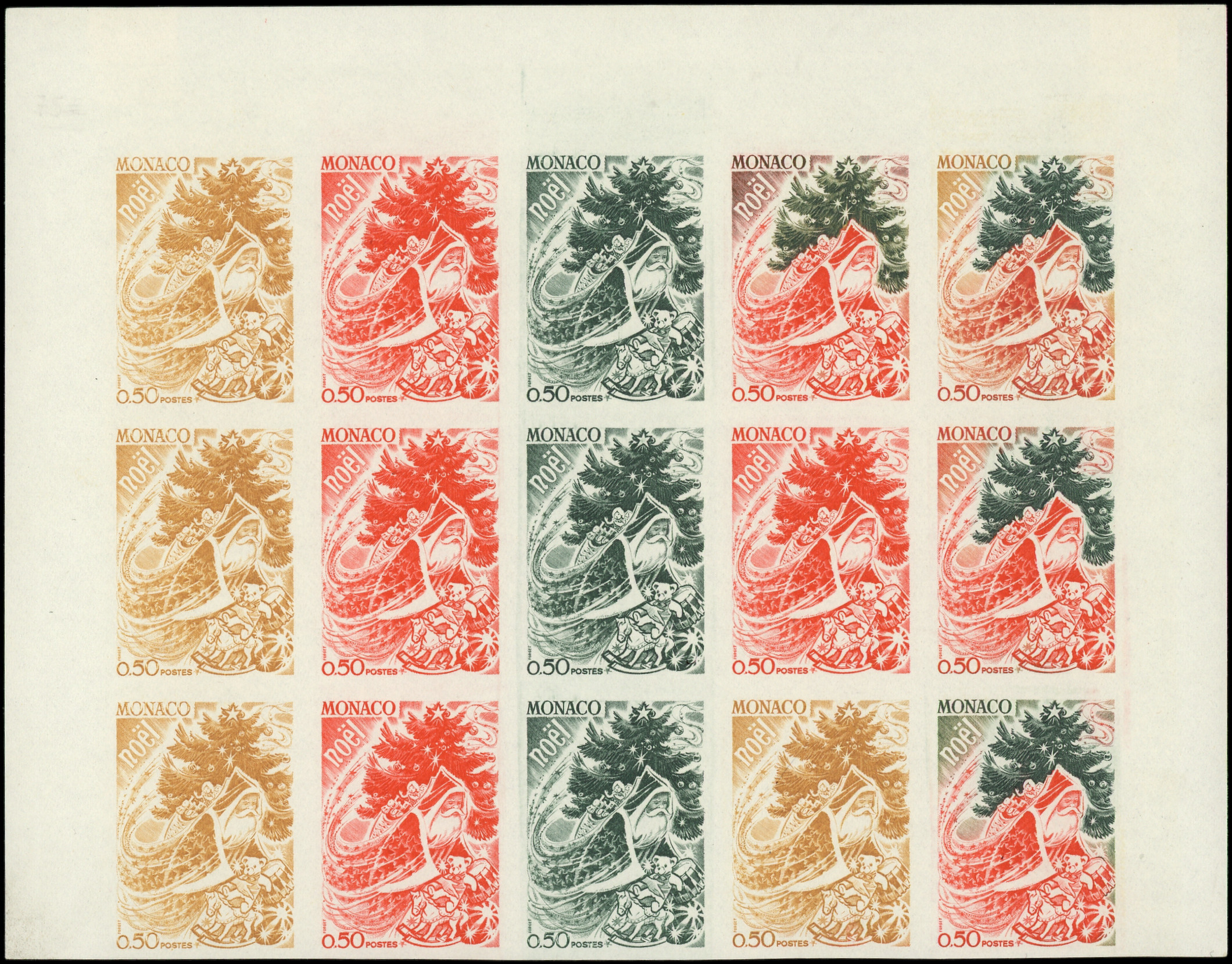 BLOC de 15, 3 BANDES de 5 ESSAIS de COULEUR, TB (Image)