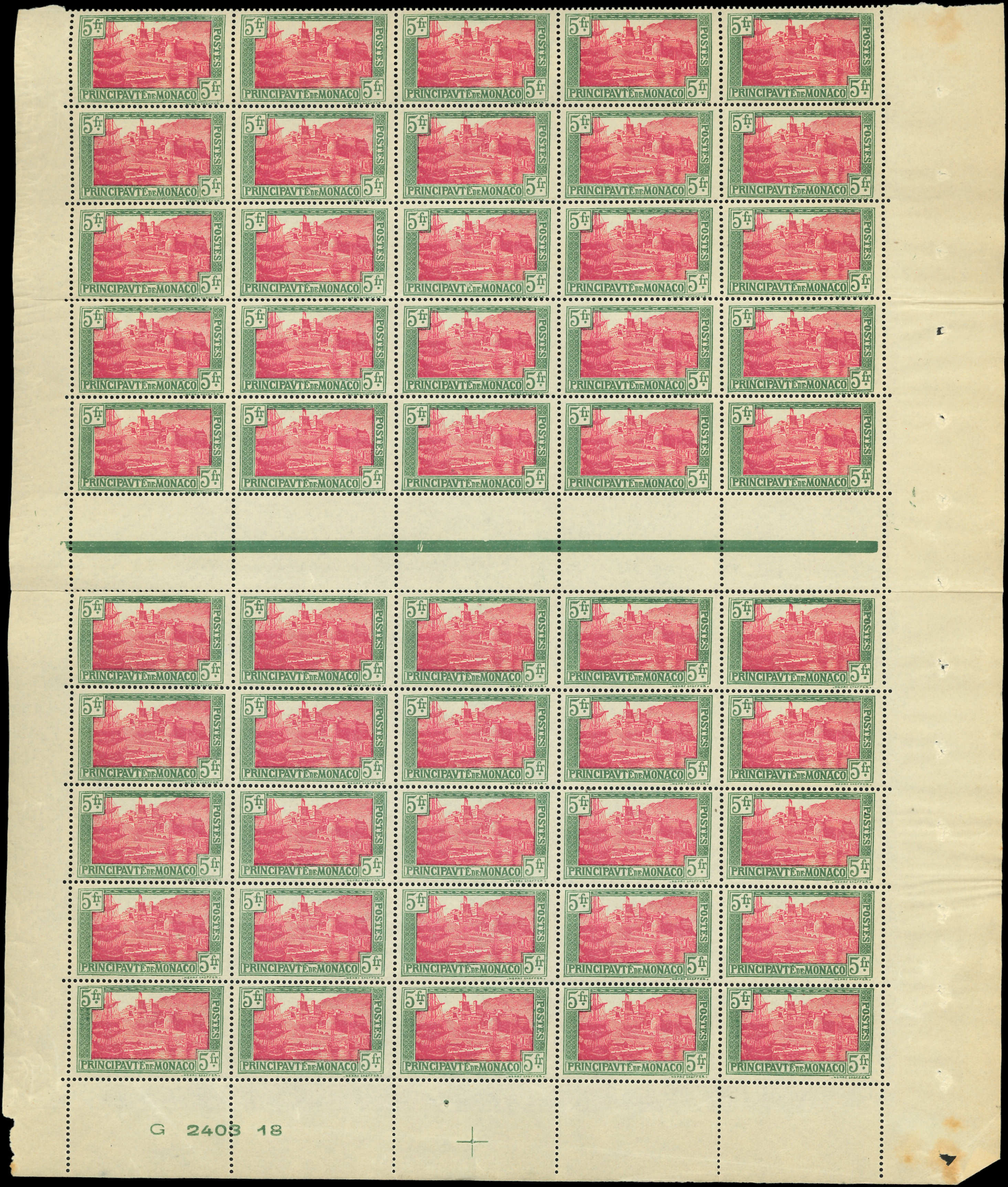 5f. vert et rose, PANNEAU de 25, TTB (Image)
