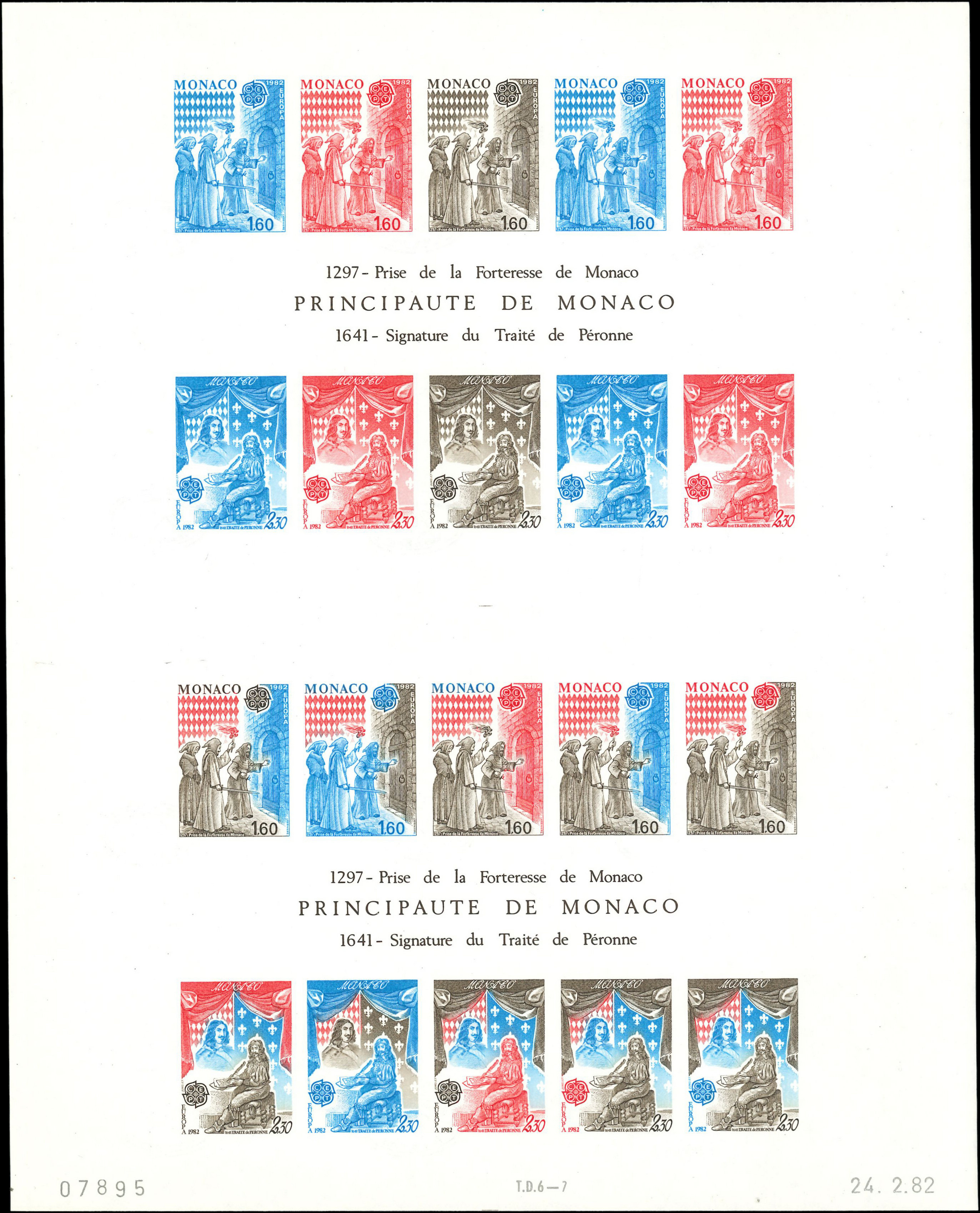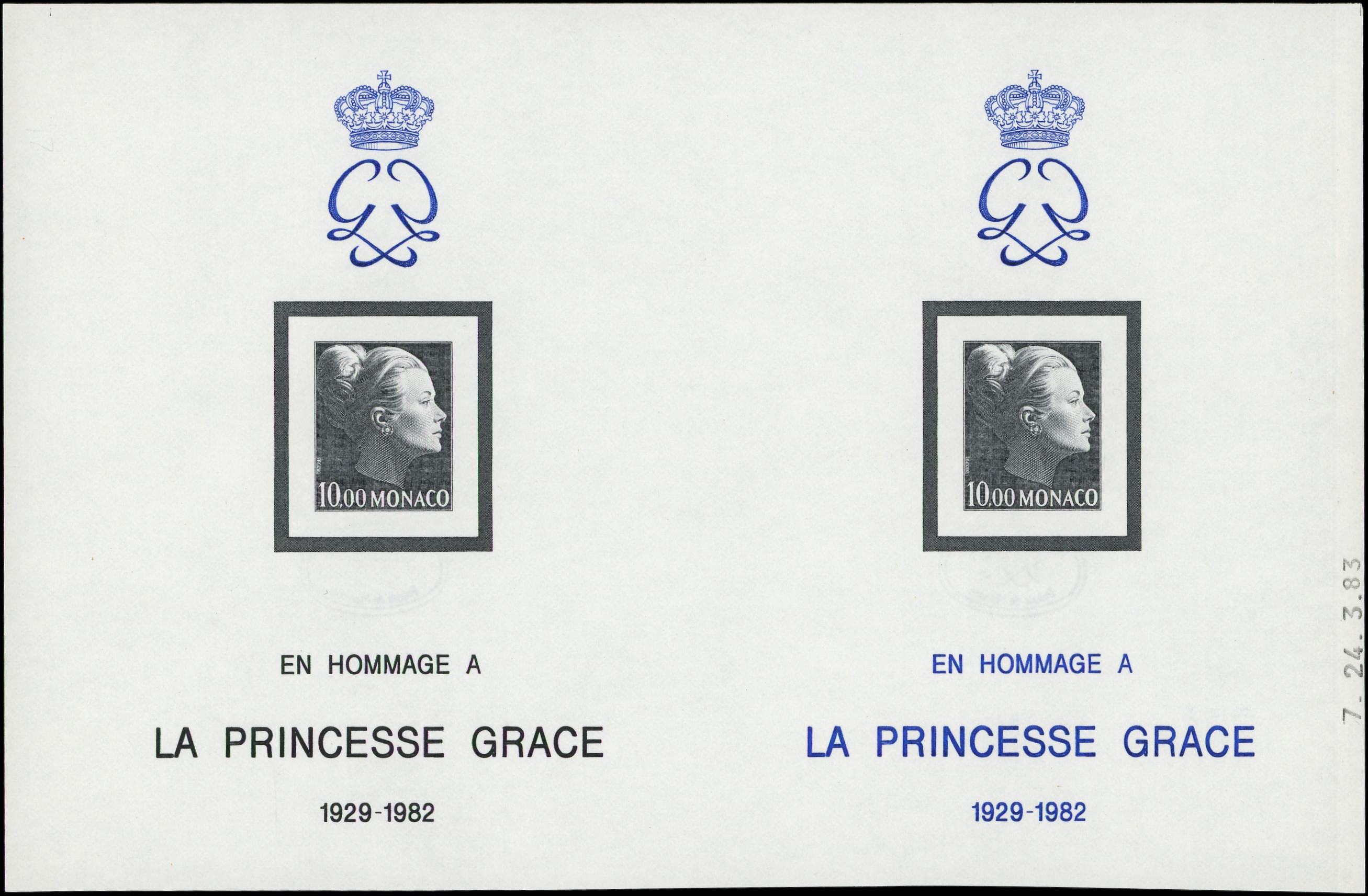 Princesse Grace, ESSAI de COULEUR, PAIRE horizontale NON DENTELEE CD 24/3/82, TB (Image)