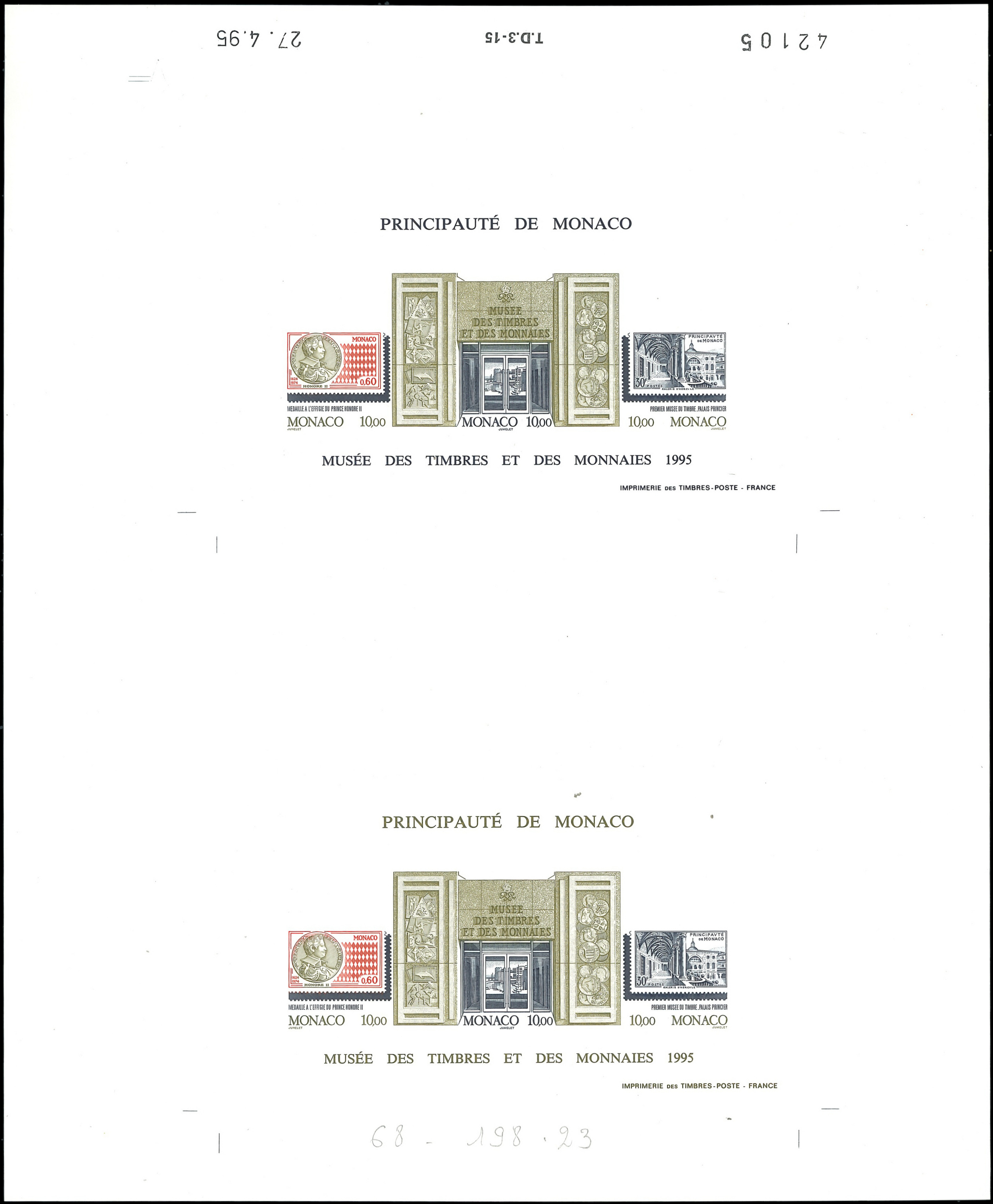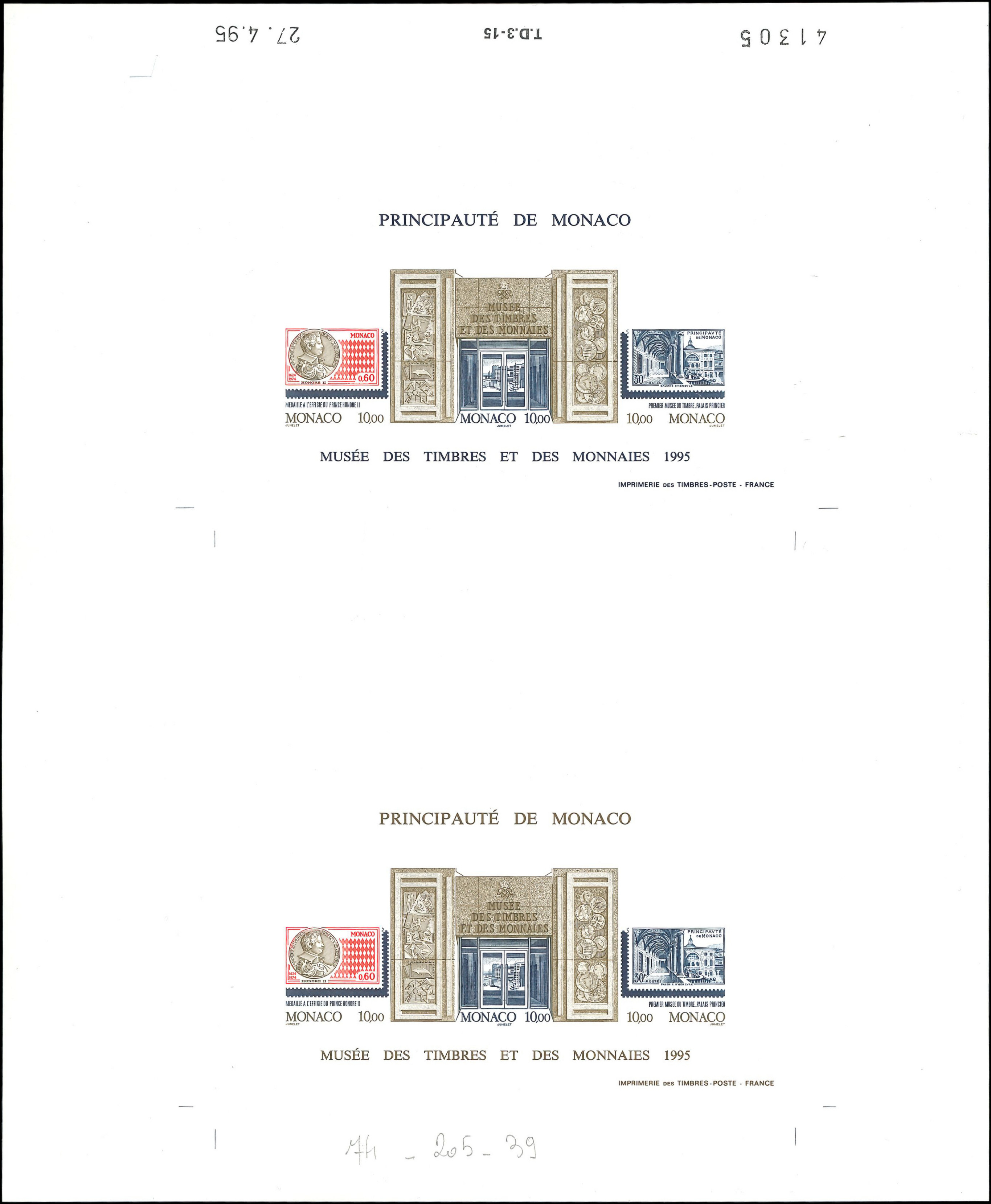 Timbres et de la Monnaie, PAIRE, ESSAIS de COULEUR NON DENTELES CD 27/4/95, TB (Image)