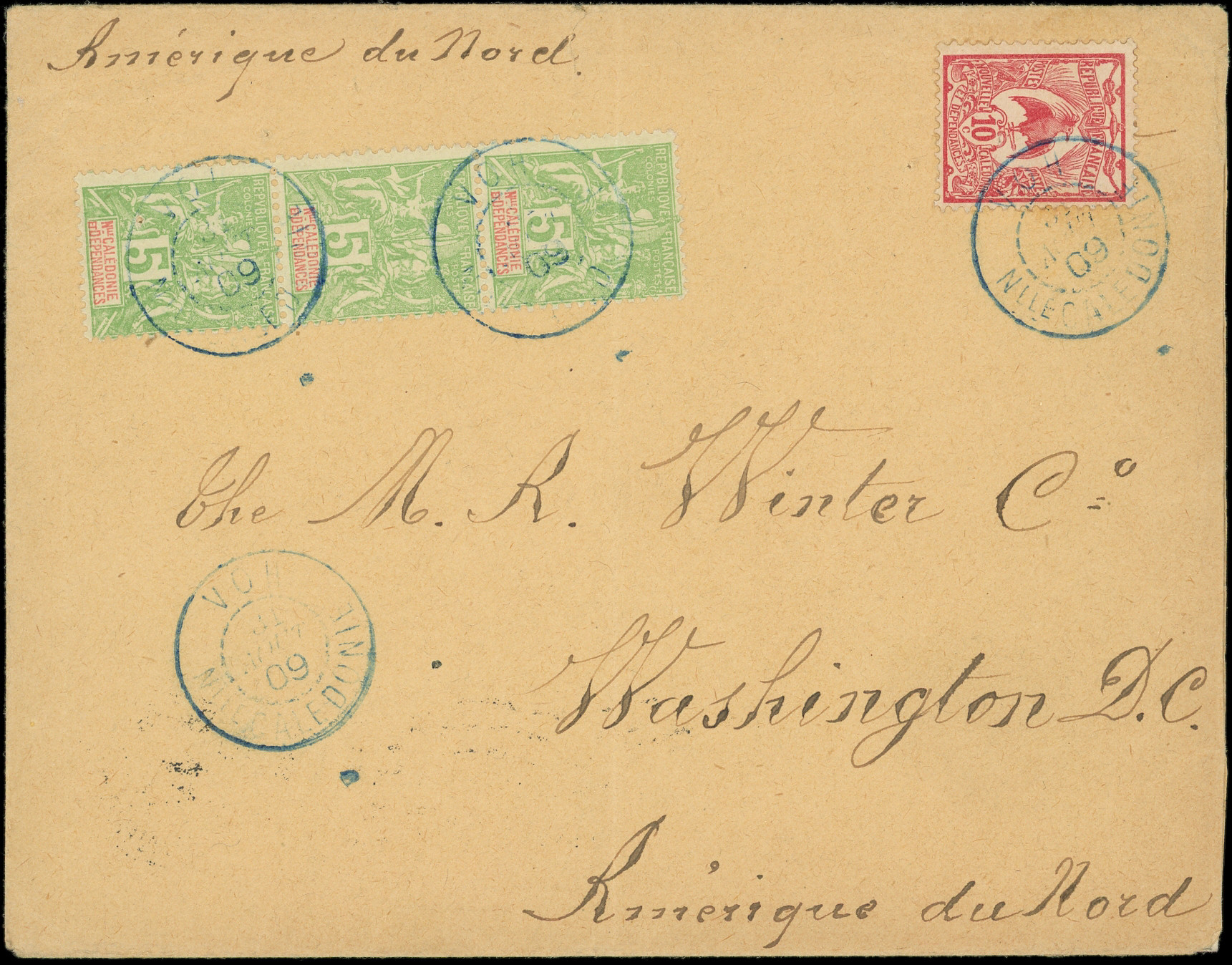 BANDE de 3 et 10c. rose obl. càd bleu VOH 31/8/09 s. Env., arr. WASHINGTON, TB (Image)