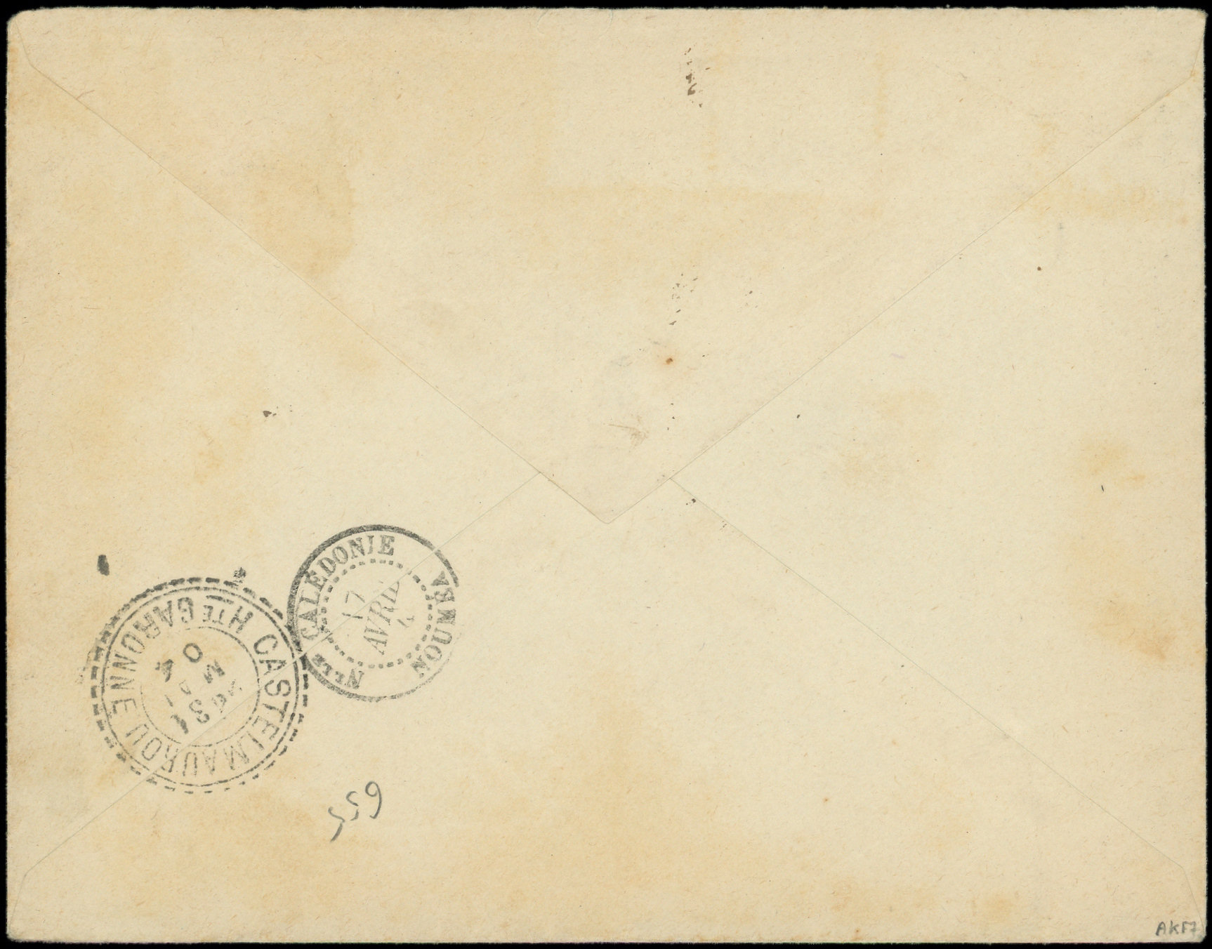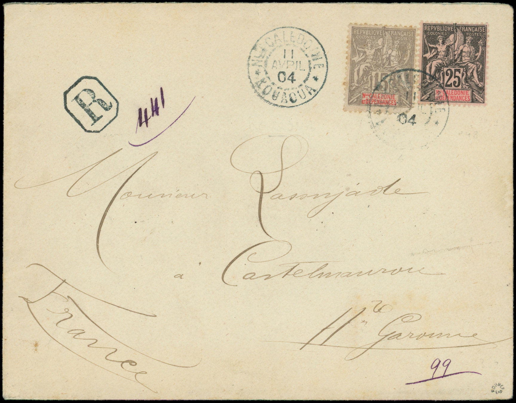 noir sur rose et 15c. gris obl. càd KOUAOUA 11/4/04 s. Env. Rec., arr. CASTELMAUROU, TB (Image) (Image2)