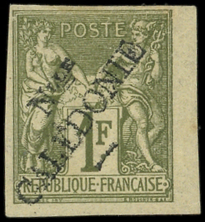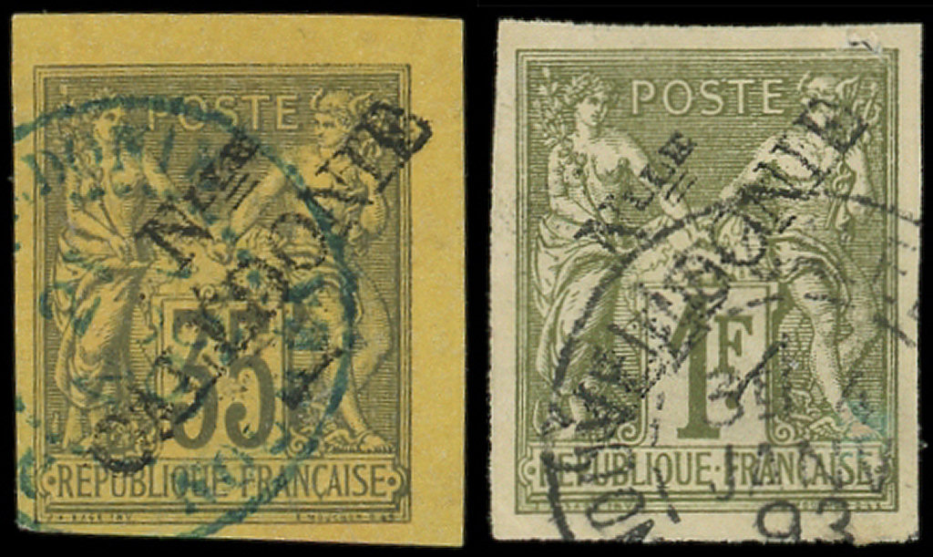 violet-noir sur jaune et 1f. olive, obl., TB (Image)