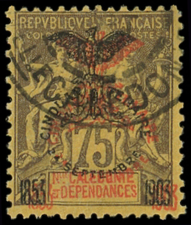 sur jaune, DOUBLE surcharge noire et rouge, obl., TB. C (Image)