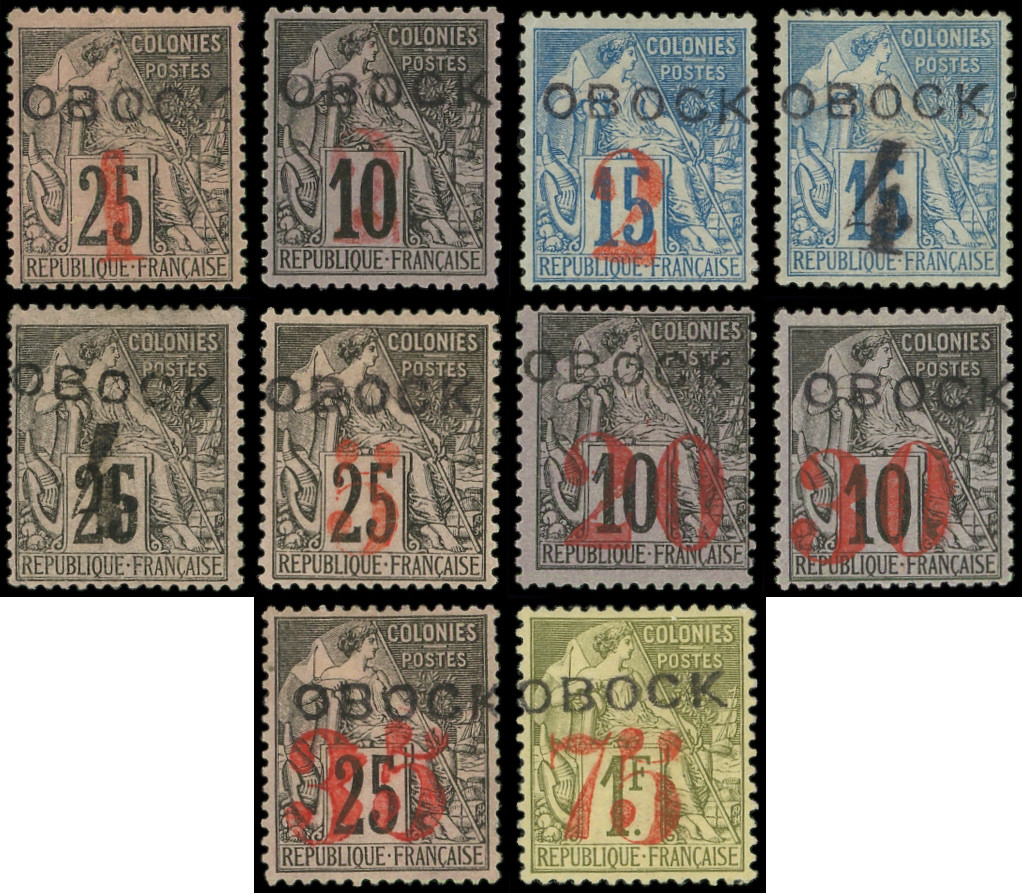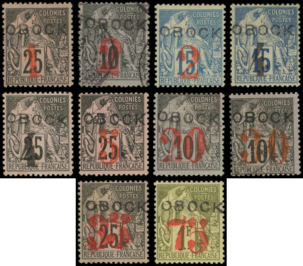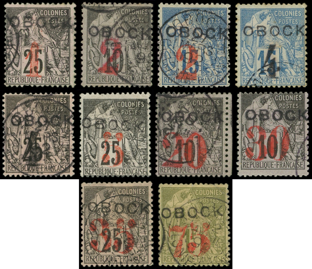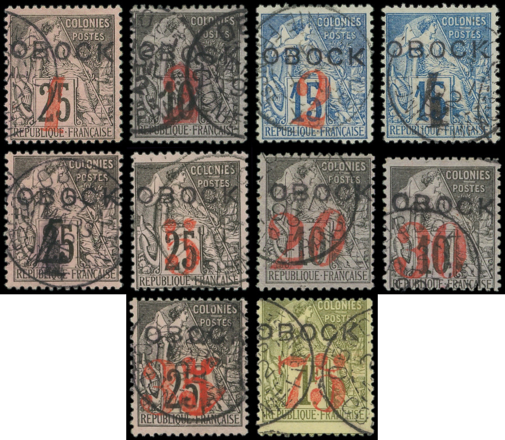 Commerce, surchargés de 1892, N°22 obl., N°25/27 (*), N°28 obl., TB (Image)