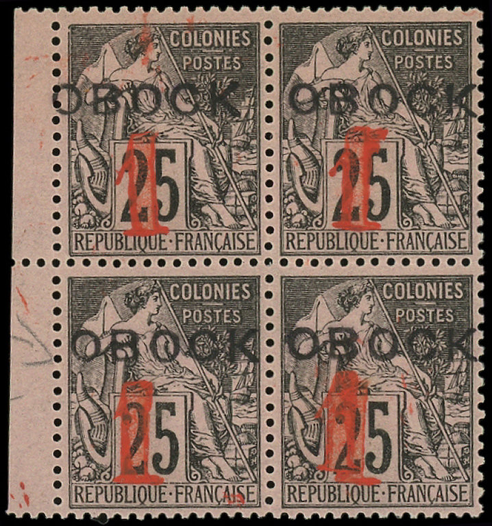 noir sur rose, DOUBLE surch. du 1 dans un BLOC de 4, TB (Image)