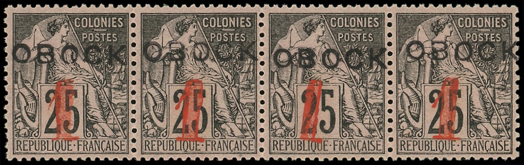 noir sur rose, BANDE de 4, 1 ex. variété 1 sans barre, TTB (Image)