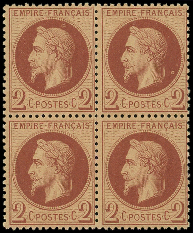 brun-rouge T I, BLOC de 4, un ex. anneau lune et grain dans le papier, TB (Image)