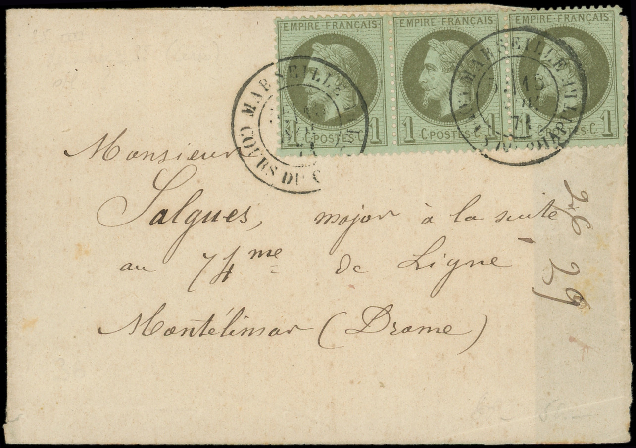 vert-bronze, BANDE de 3 obl. càd MARSEILLE COURS du CHAPITRE 15/11/71 s. bande, TB (Image)