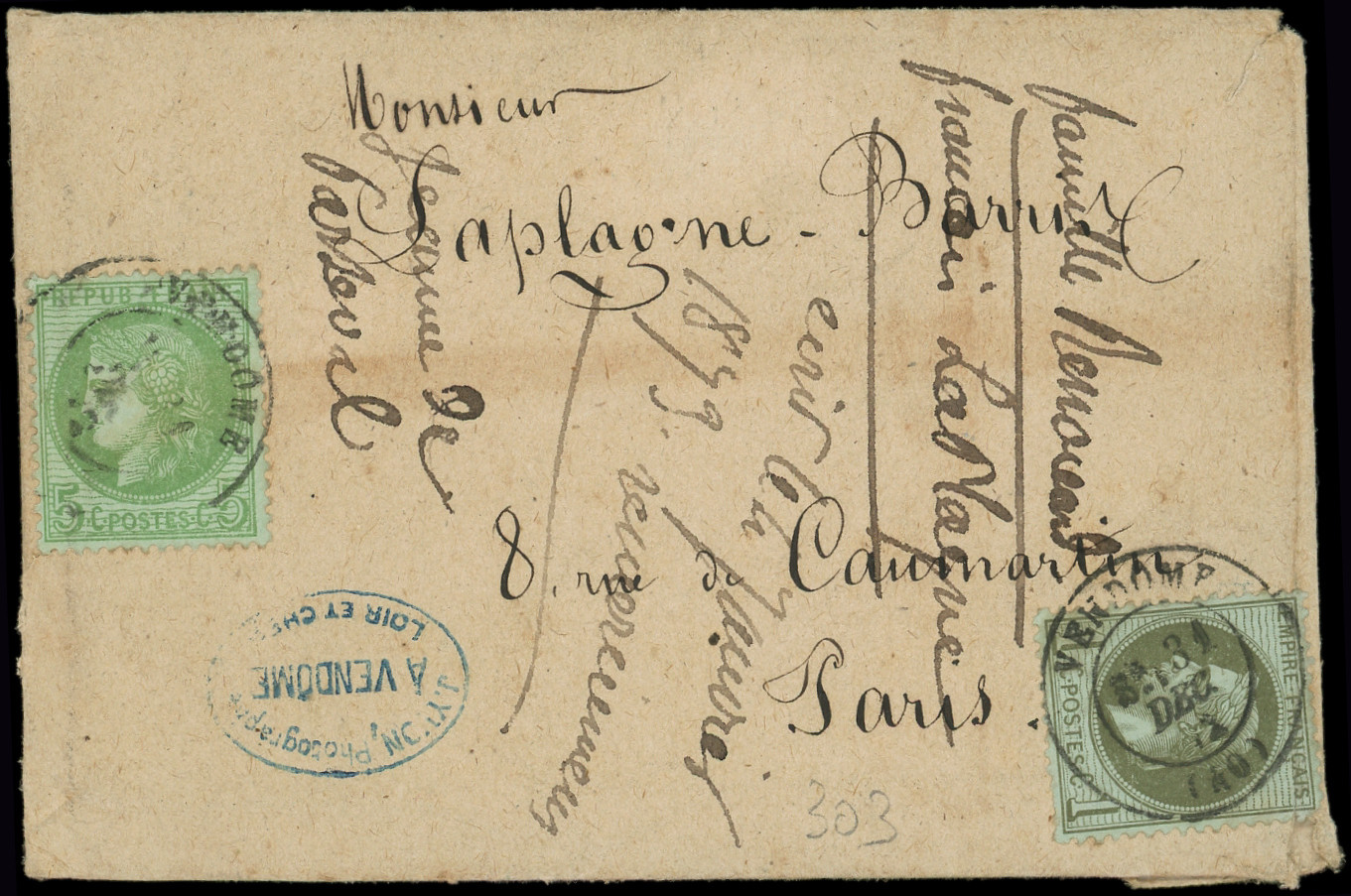 vert-bronze et 5c. vert-jaune s. azuré, obl. càd T17 VENDOME 31/12/72, Envoi sous Env., cachet J. YVON Photographie, TB (Image)