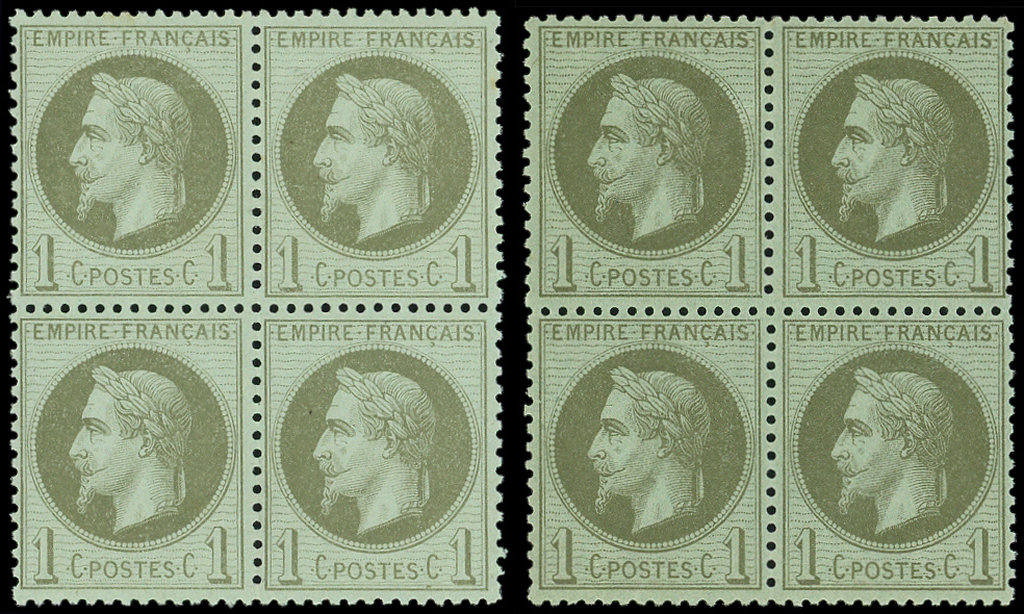 vert-bronze et vert olive, 2 BLOCS de 4, bien centrés, TTB, cote * (Image)
