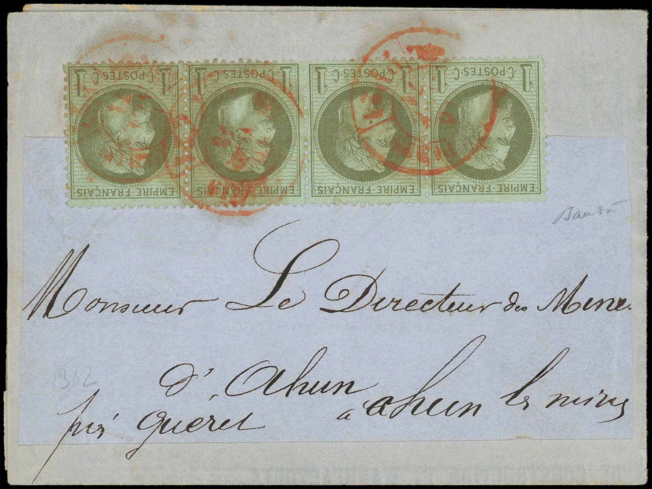 vert-bronze, BANDE de 4 obl. càd rouge des Imprimés 11/71 s. Imprimé illustré A La Flotte d'Angleterre pour Ahun, TB (Image)